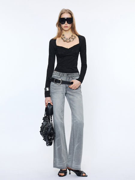 2th Desire | Studded Waistband Whiskered Jeans