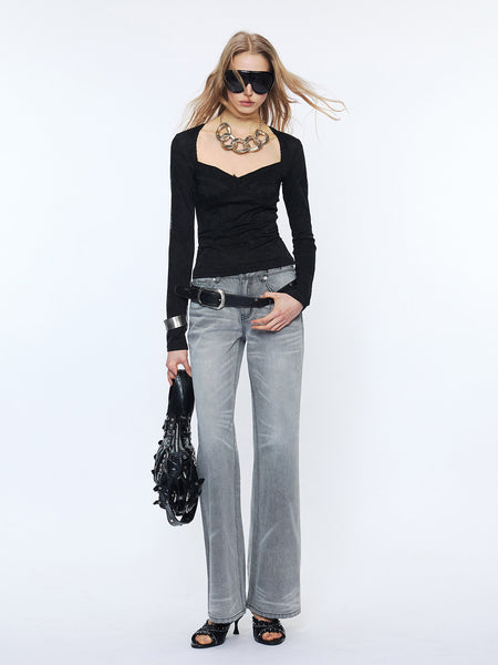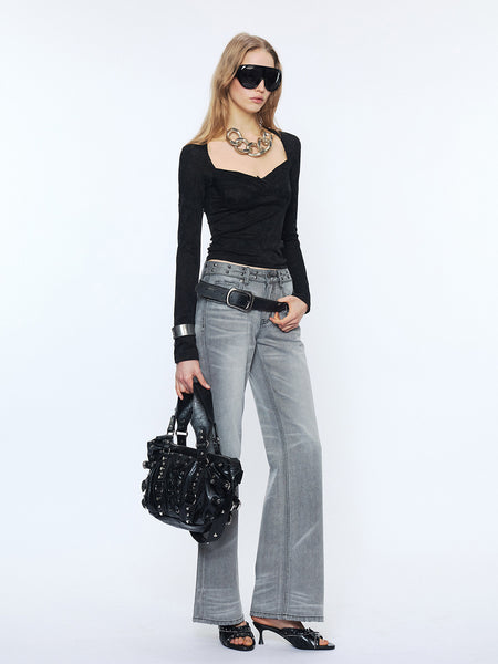 2th Desire | Double-Waisted Washed Blue Jeans