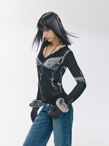 2th Desire | Underwear Jacquard V-Neck Sweater