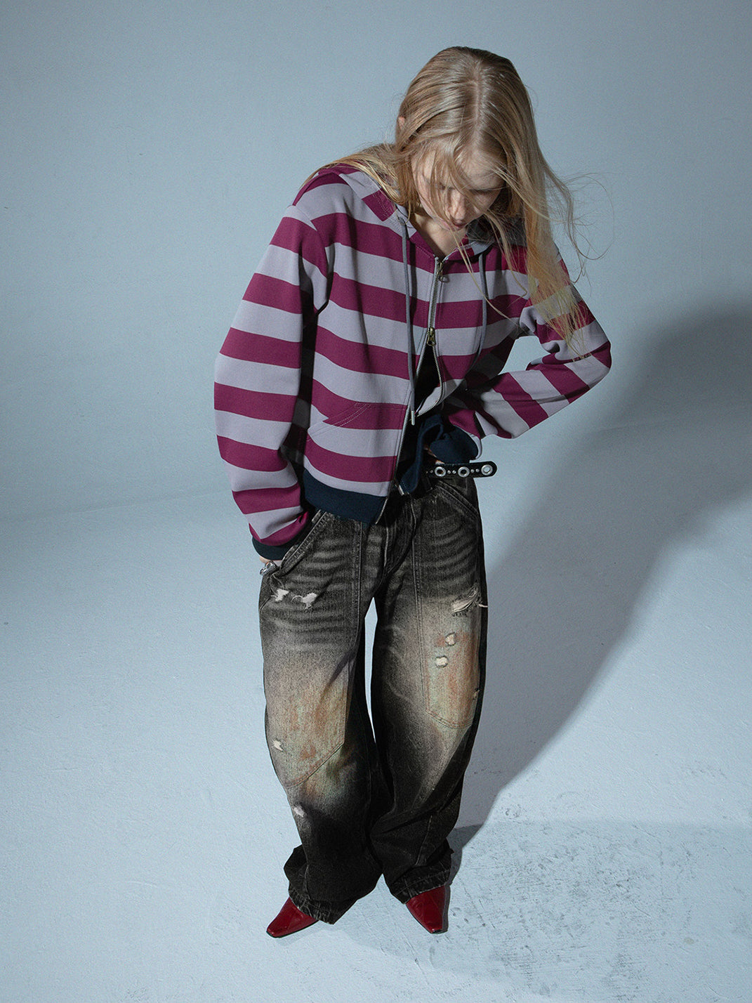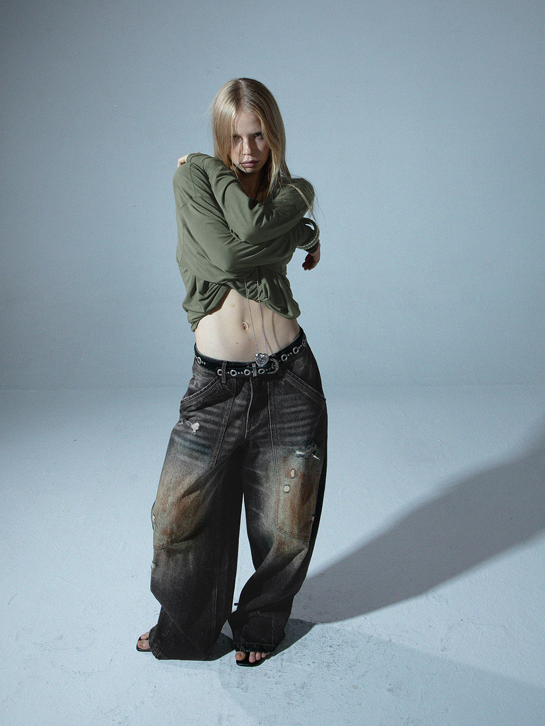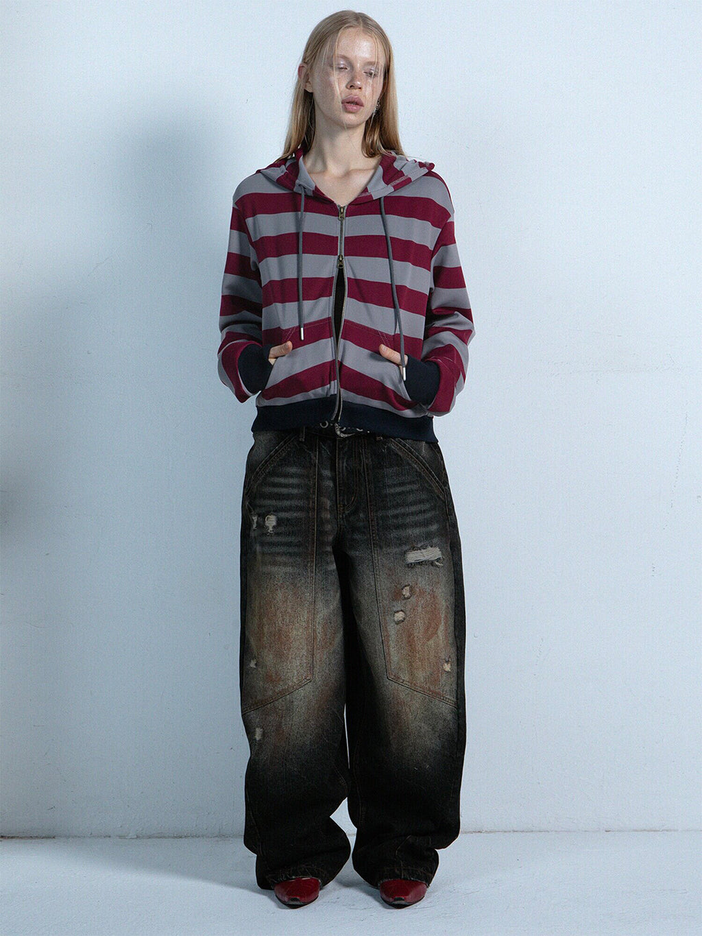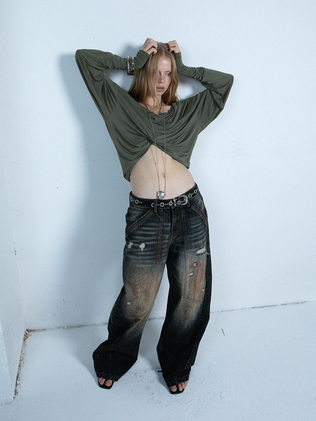 DOUBLEPUNCH | Distressed Mud-Dyed Low-Rise Curved Jeans コンテンツにスキップ