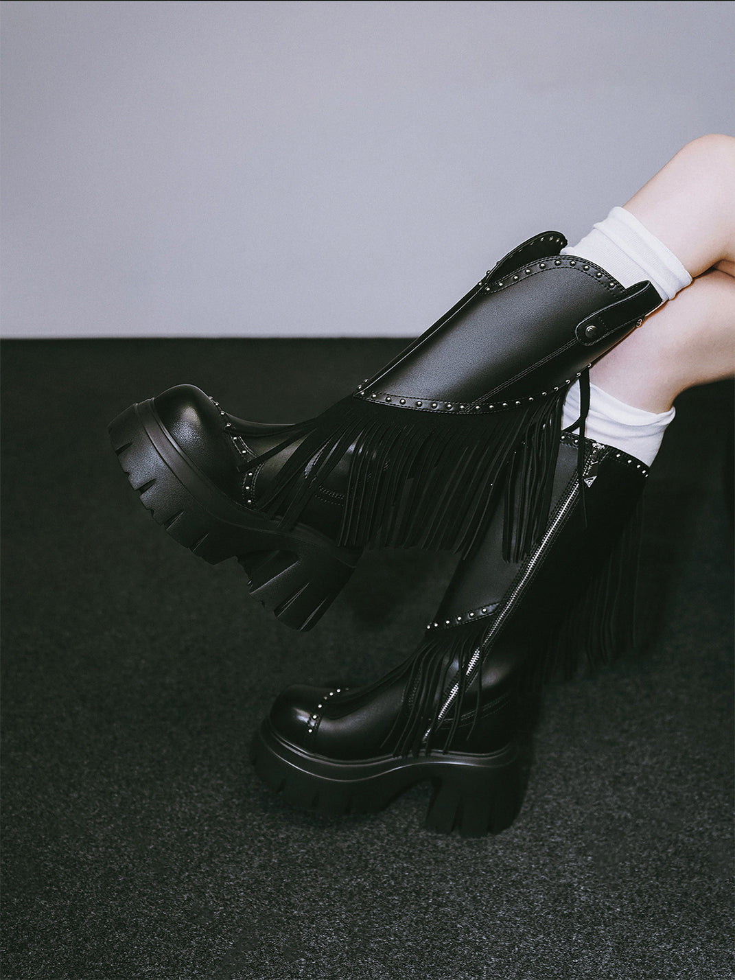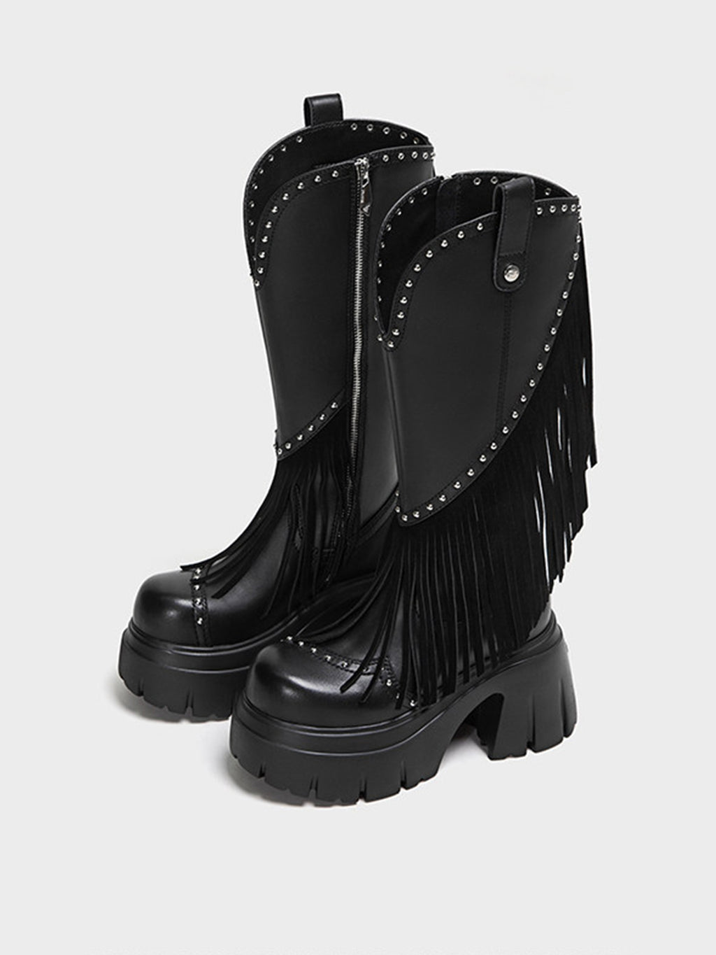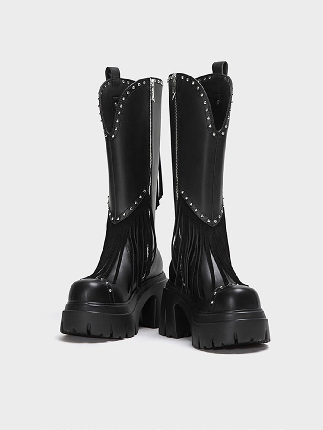 FYSPR | Tassel Studded Western Boots-Black コンテンツにスキップ
