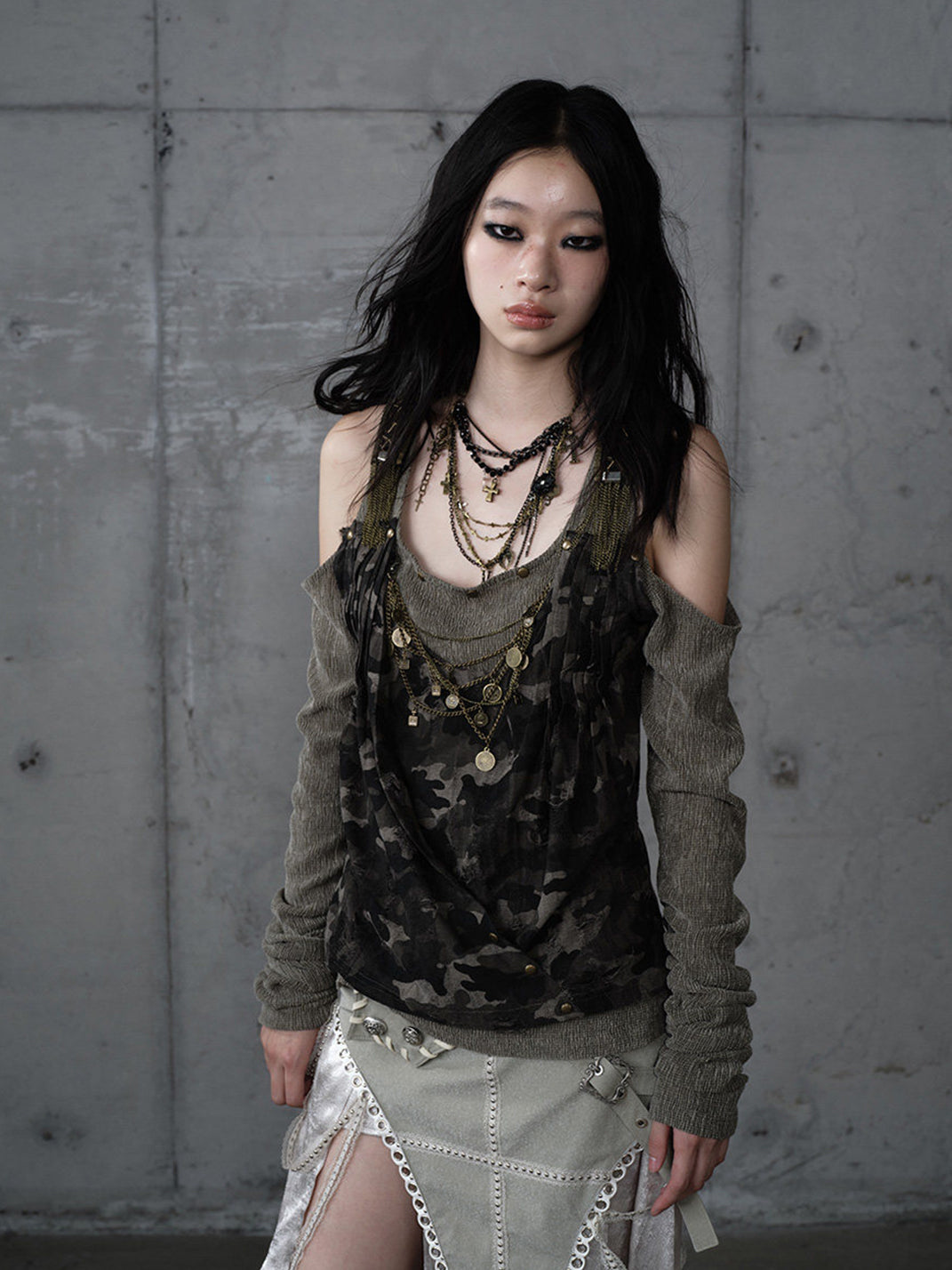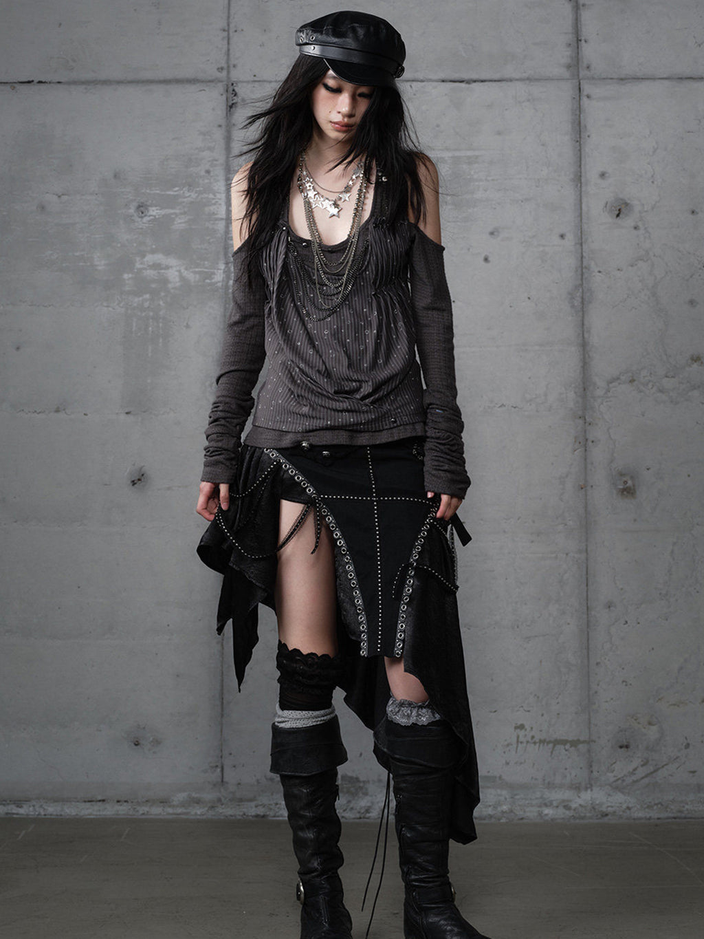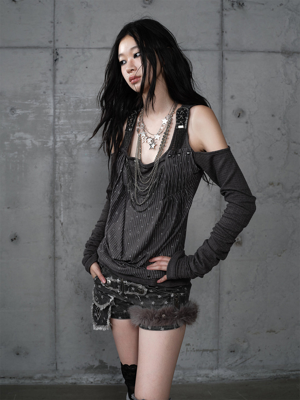NO ROMANCE | Patchwork Faux Two-Piece Knitted Long-Sleeved Top コンテンツにスキップ