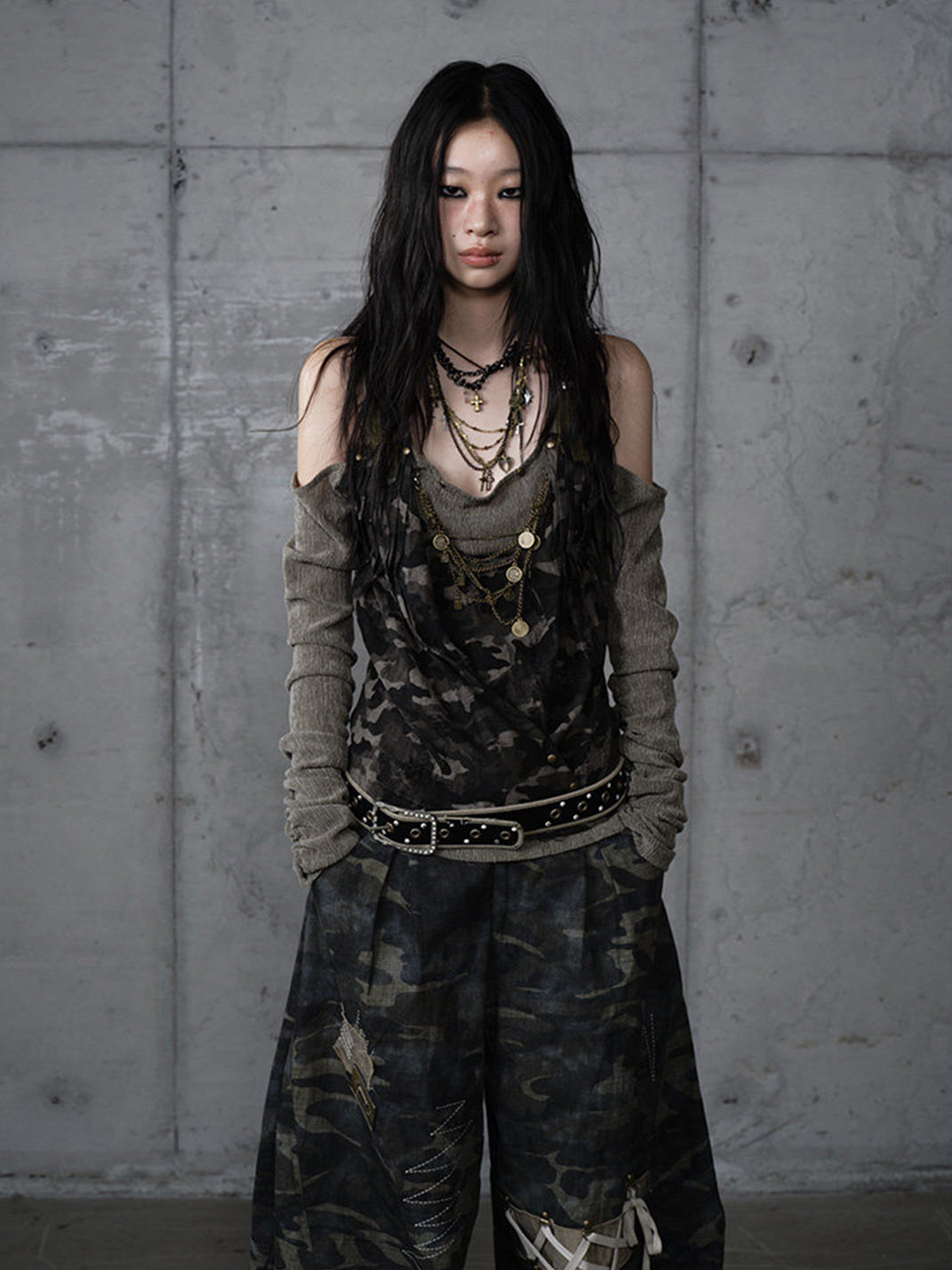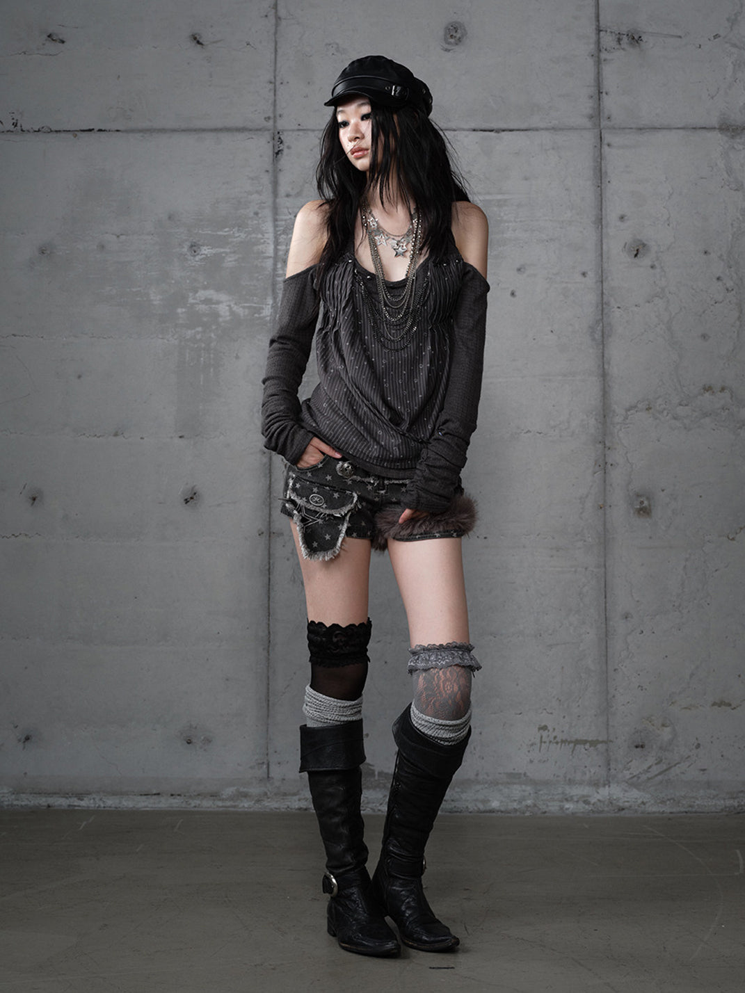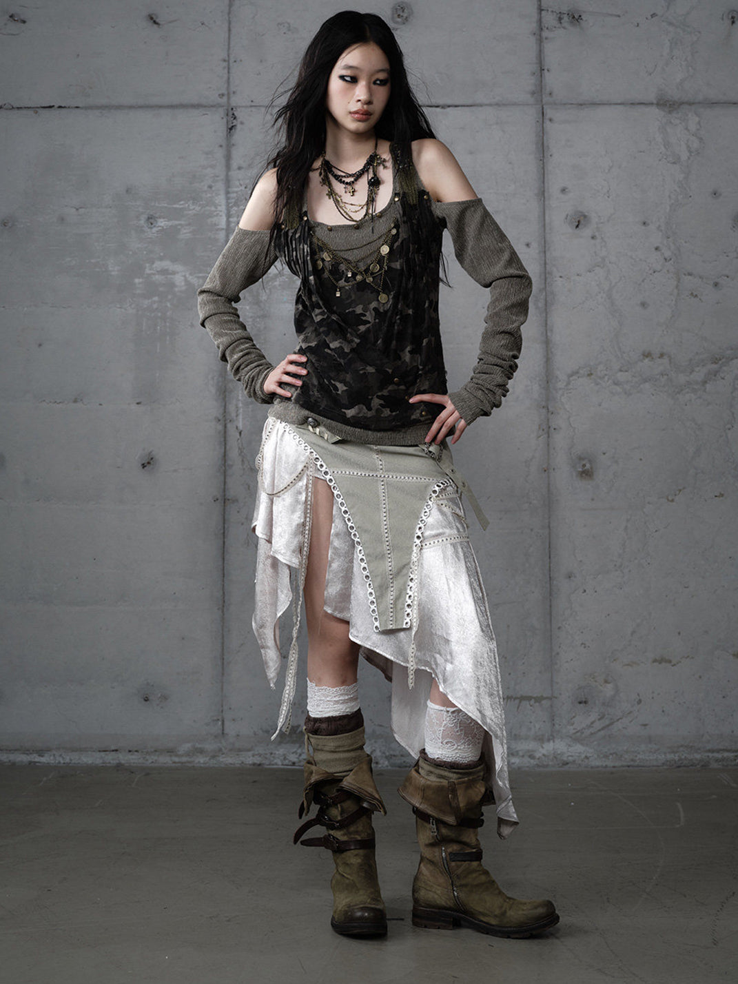 NO ROMANCE | Patchwork Faux Two-Piece Knitted Long-Sleeved Top コンテンツにスキップ