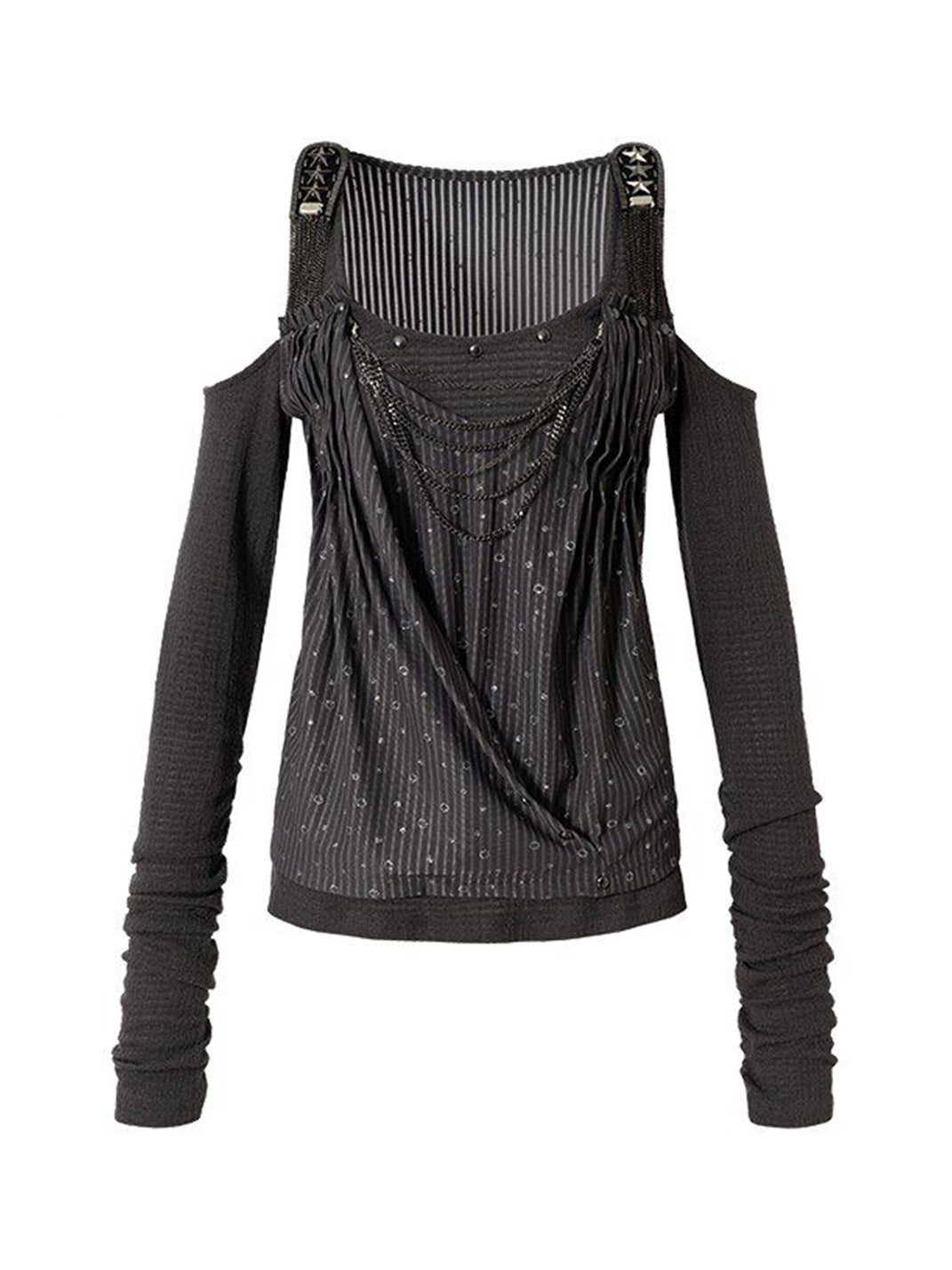 NO ROMANCE | Patchwork Faux Two-Piece Knitted Long-Sleeved Top