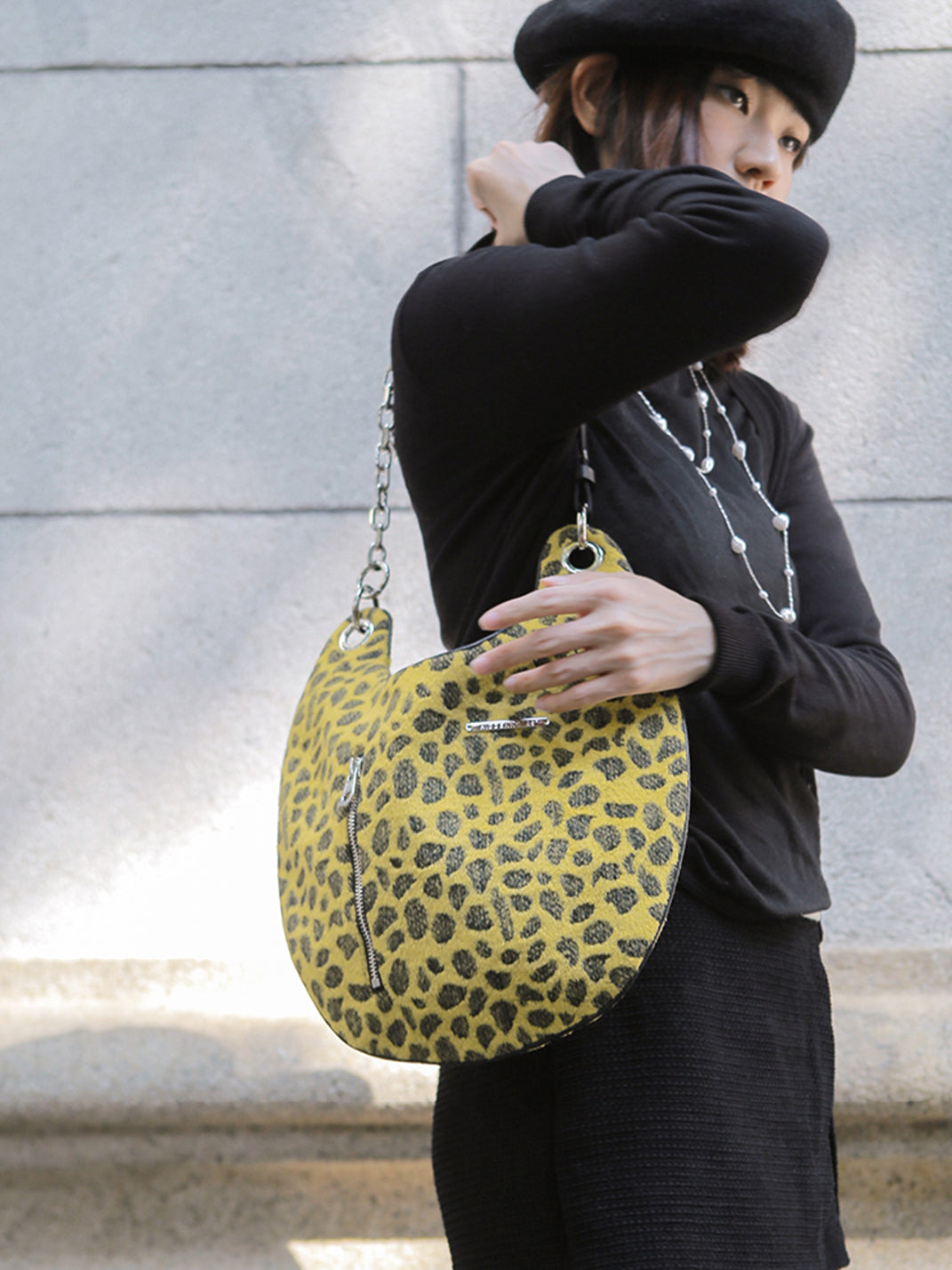 Shaped like a sleek oval egg, this bag brings playful charm with a solid, compact design.
