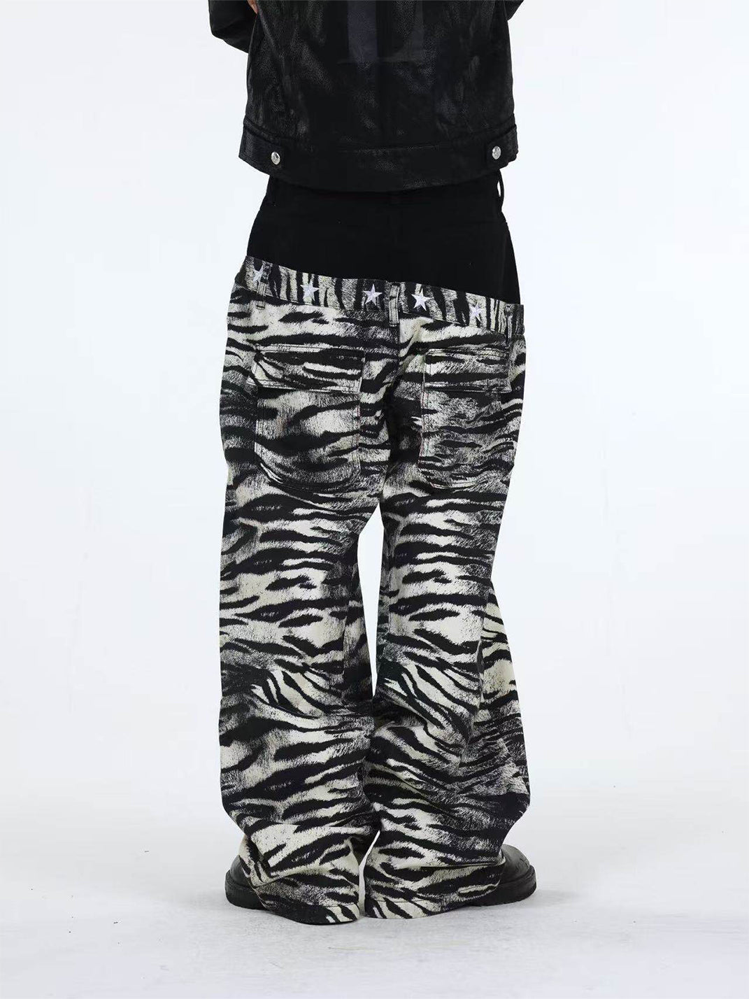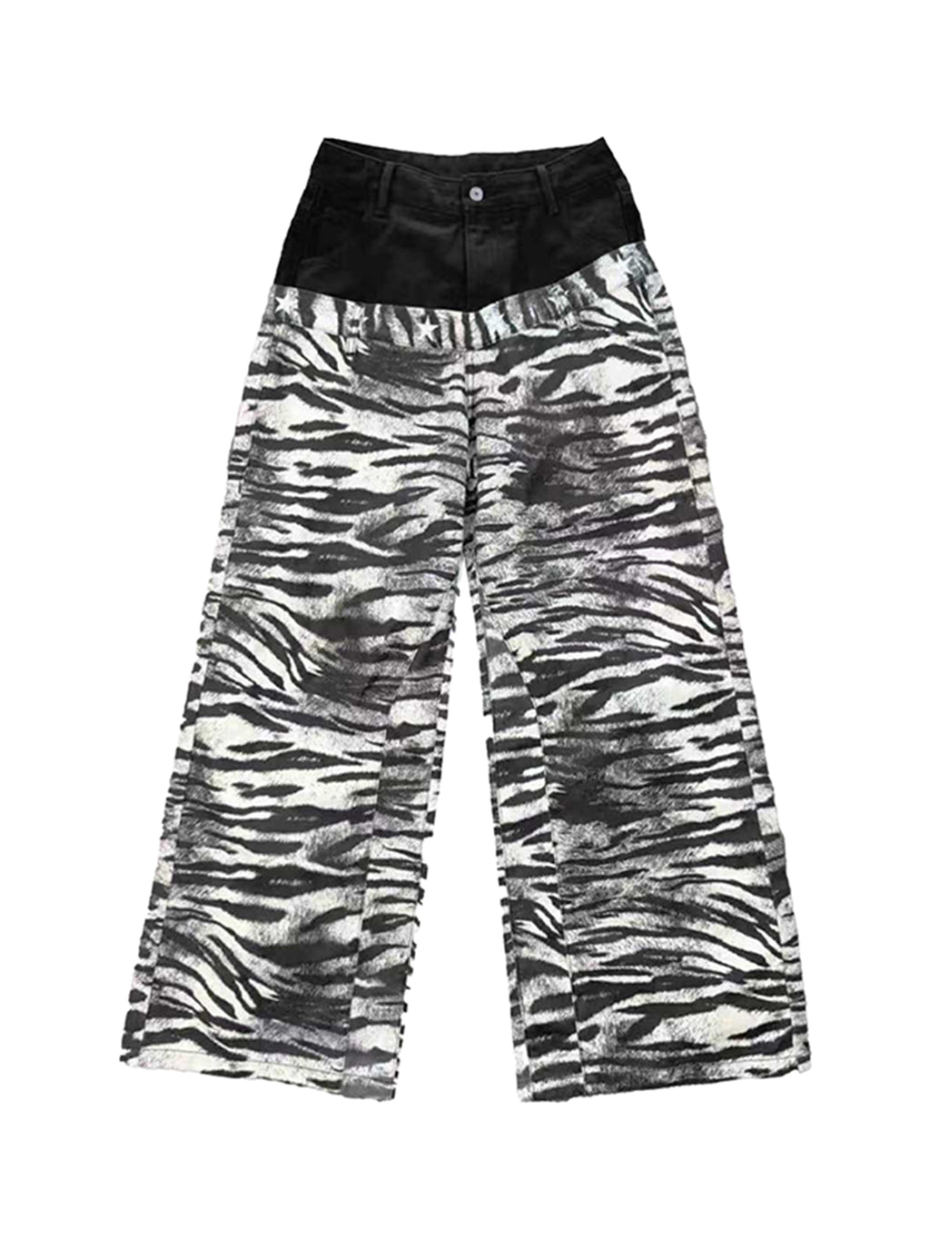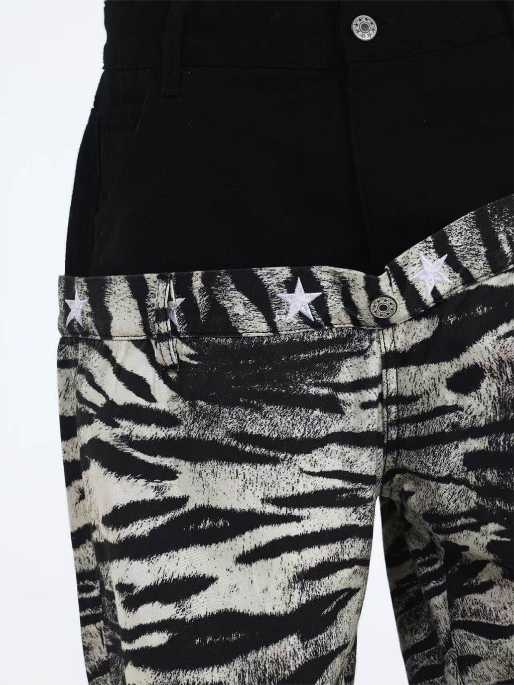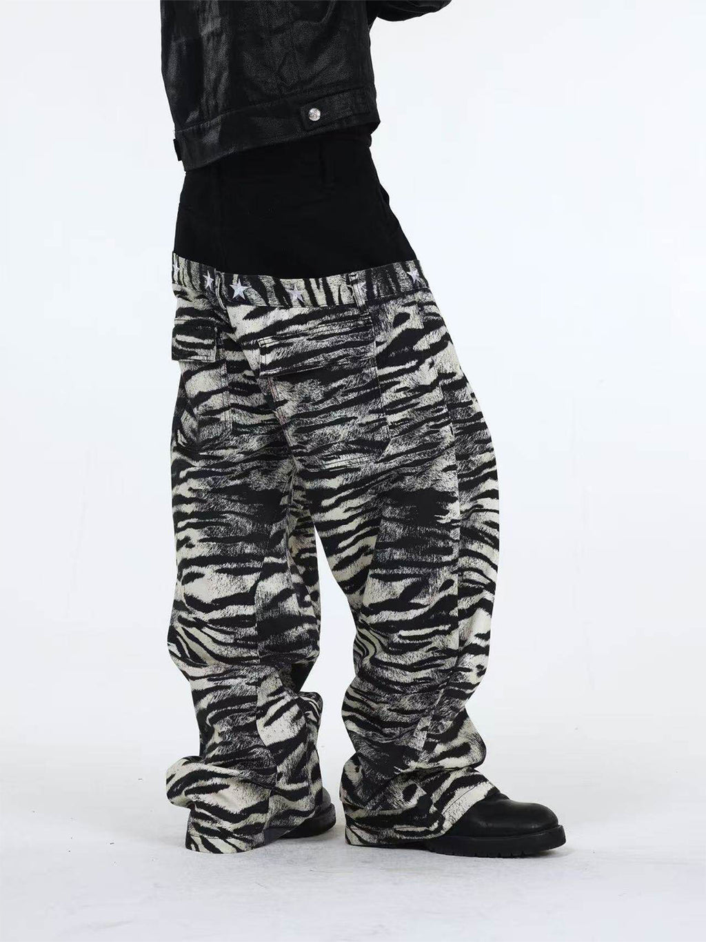 DETW | Zebra-Print Slanted Waist Jeans