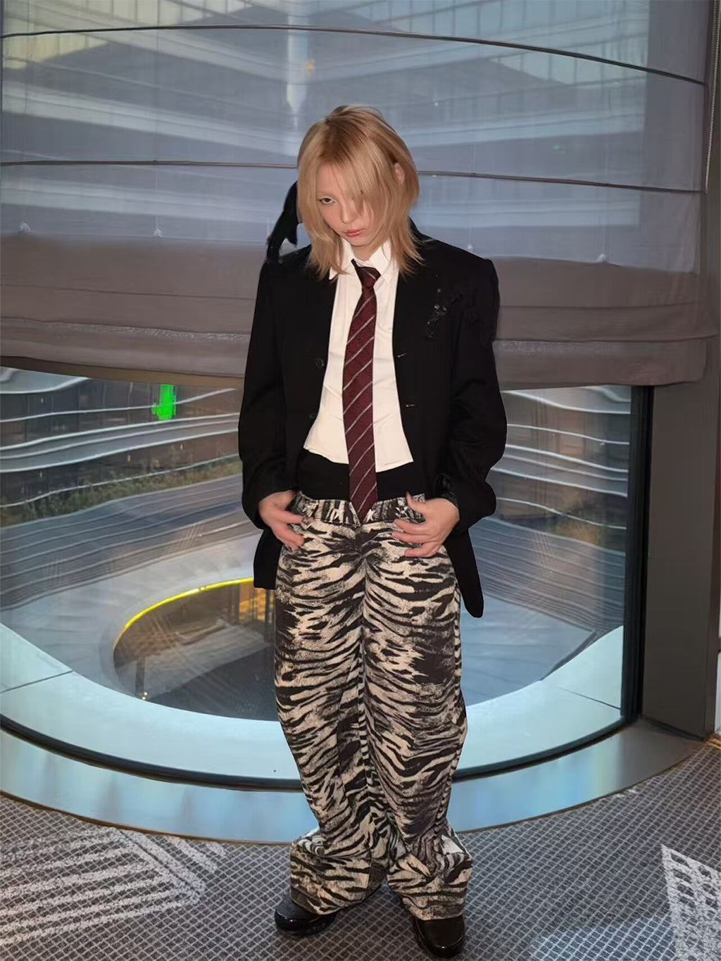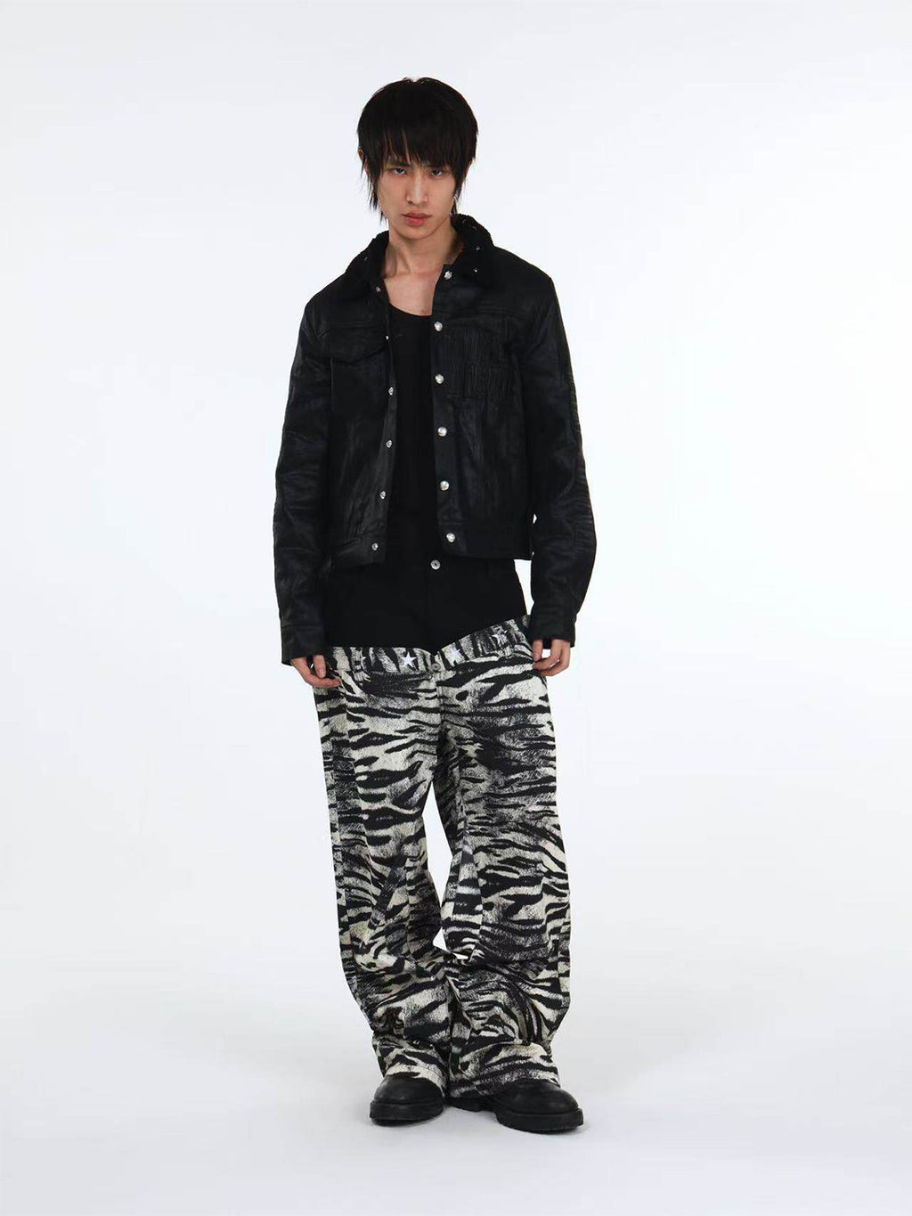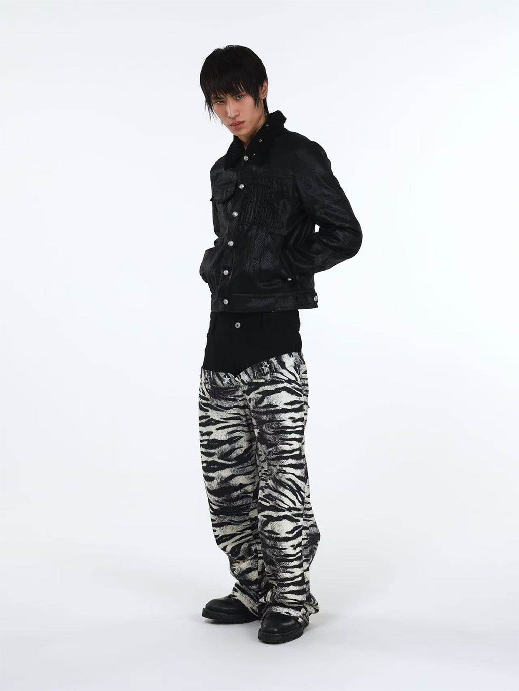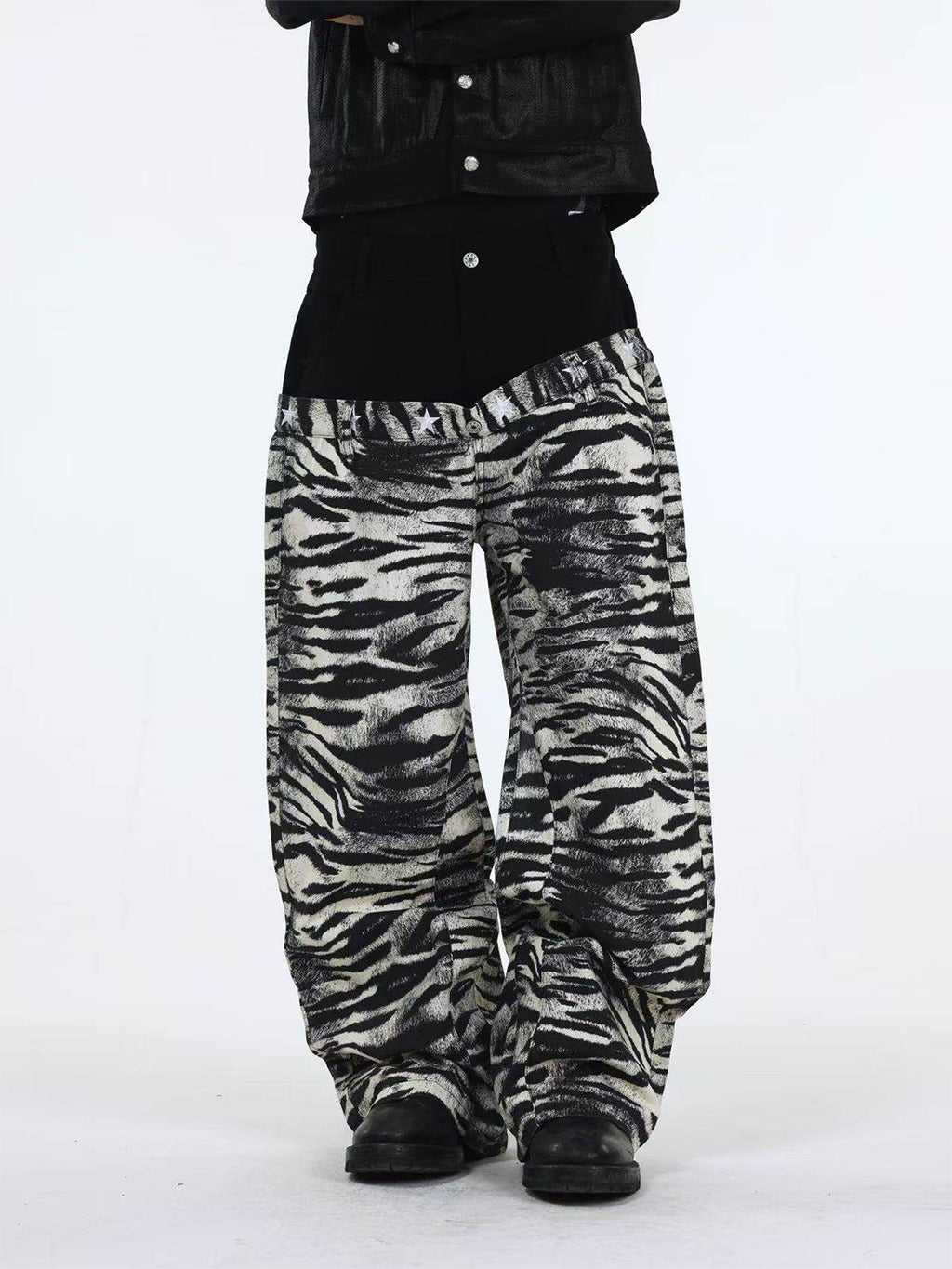 DETW | Zebra-Print Slanted Waist Jeans