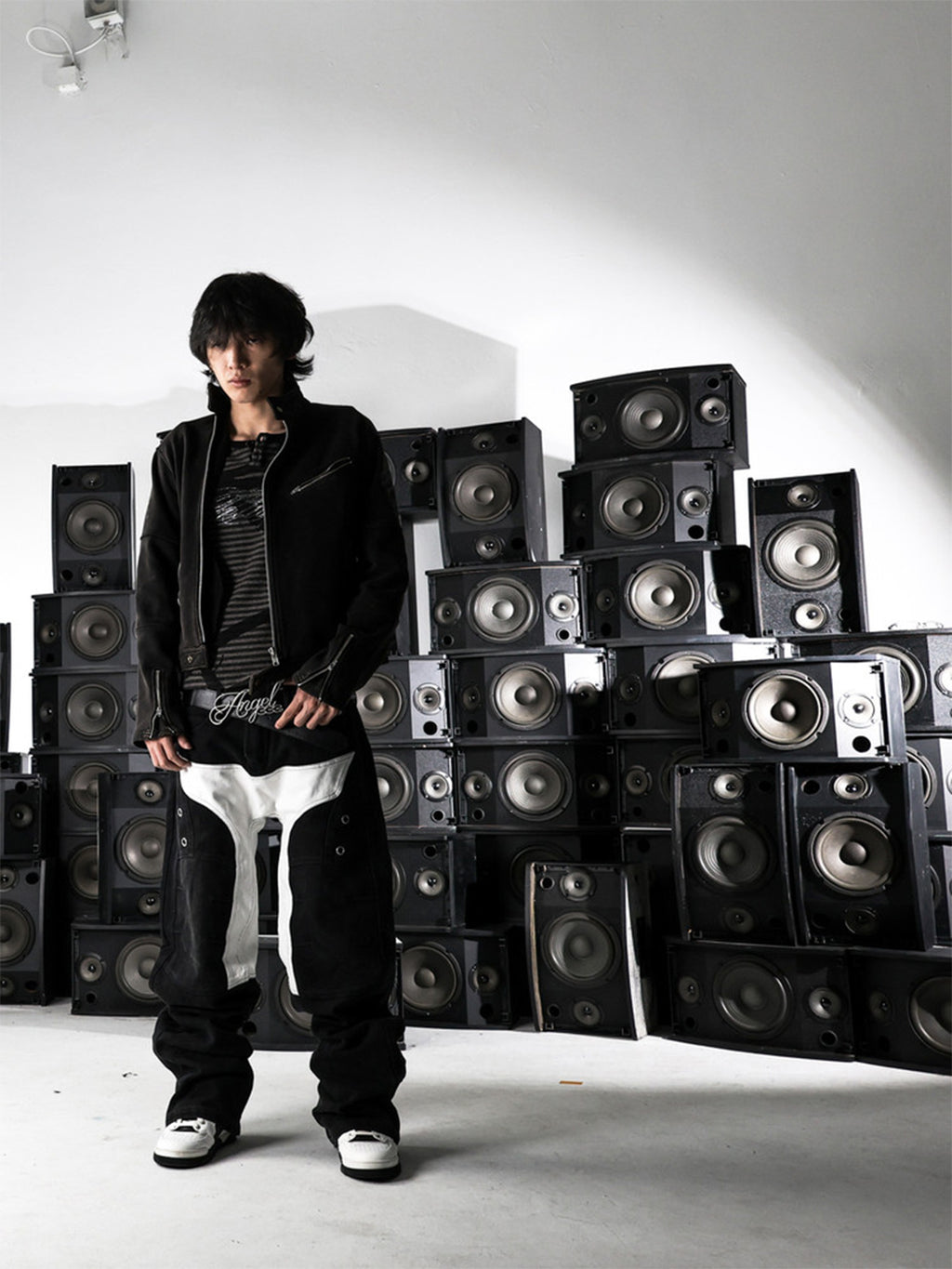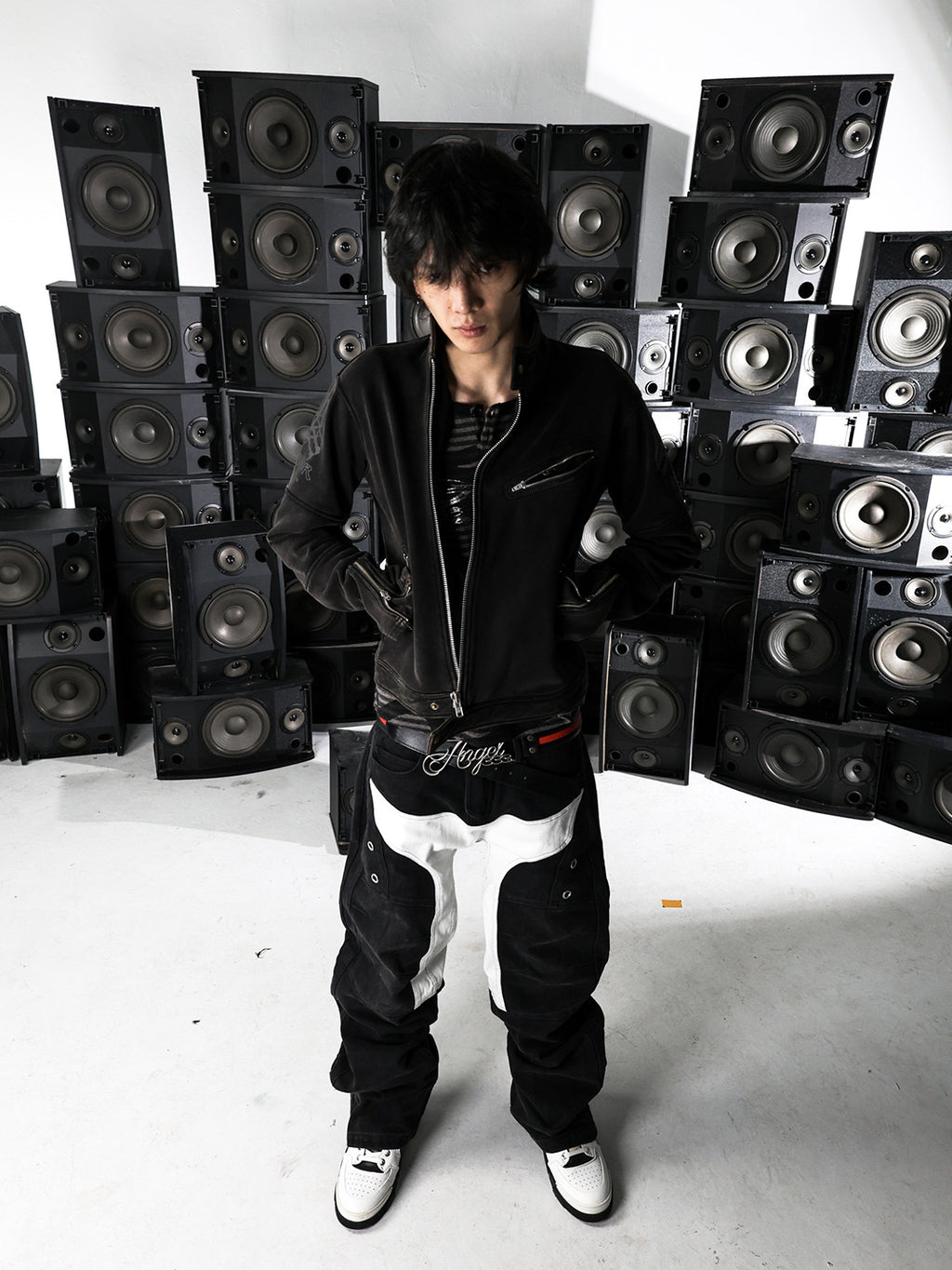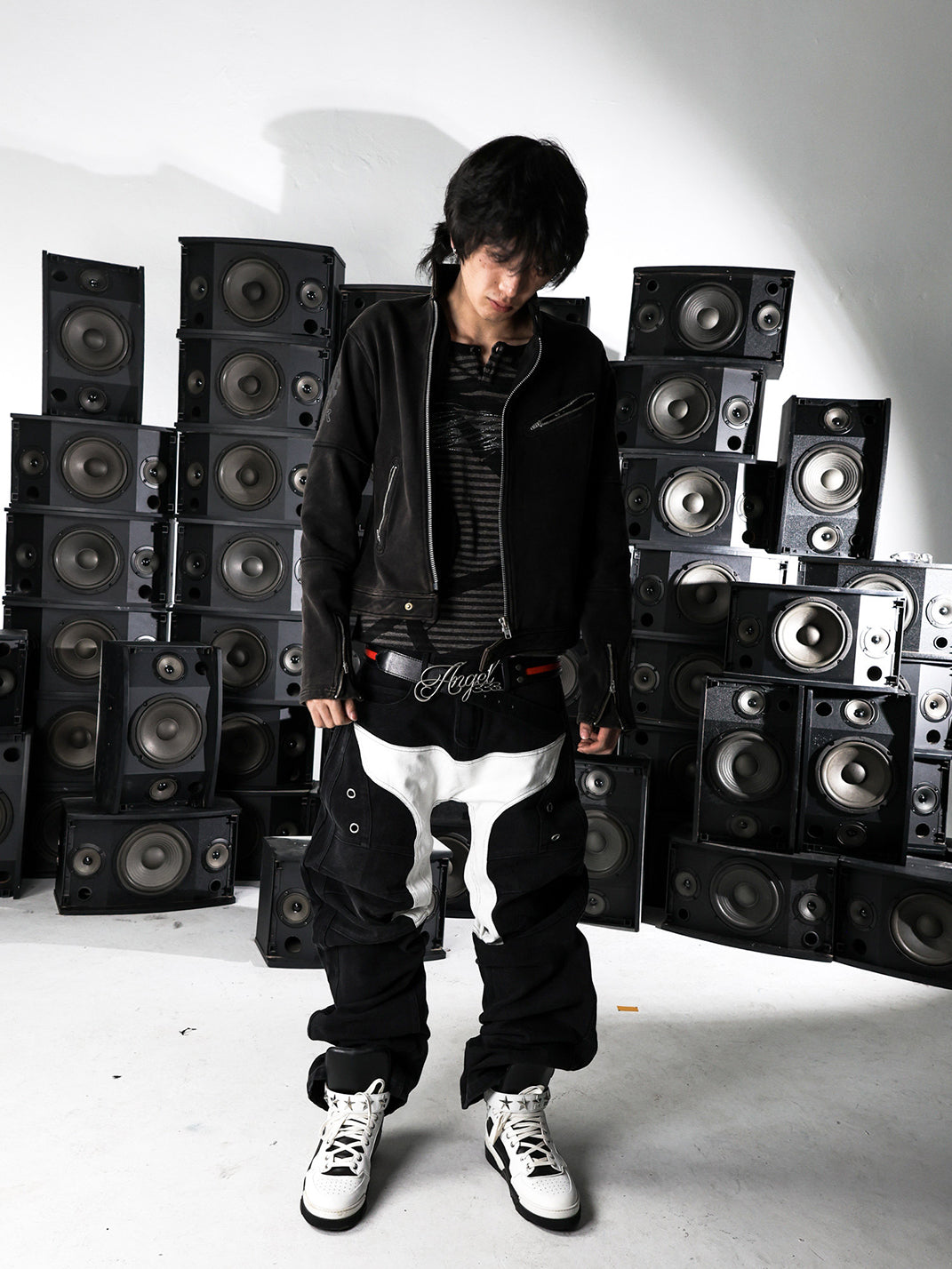 PCCVISION | Motorcycle Washed Patchwork Straight Leg Jeans コンテンツにスキップ