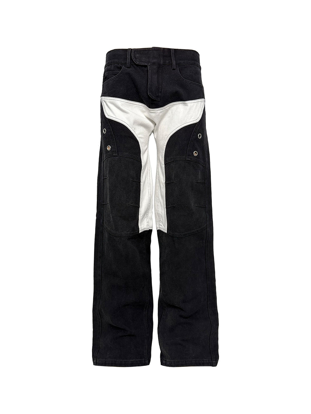 PCCVISION | Motorcycle Washed Patchwork Straight Leg Jeans