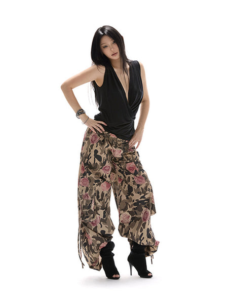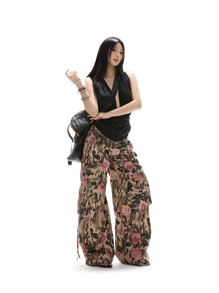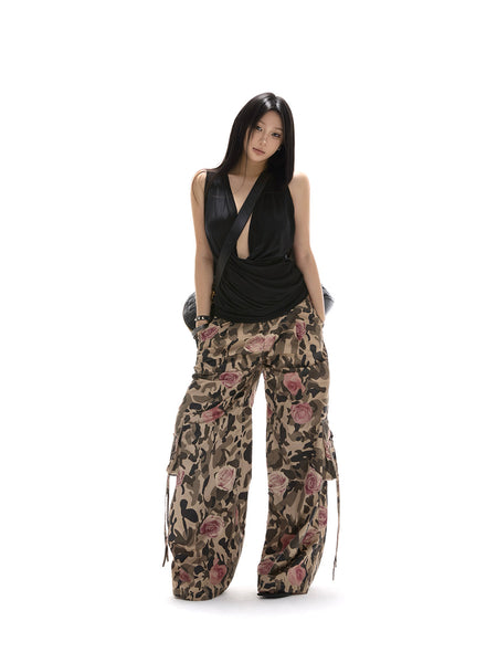 itsdinn | Printed Wide-Leg Camouflage Cargo Pants