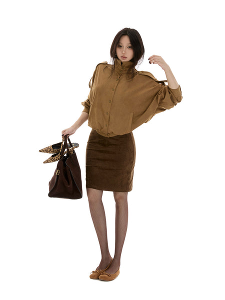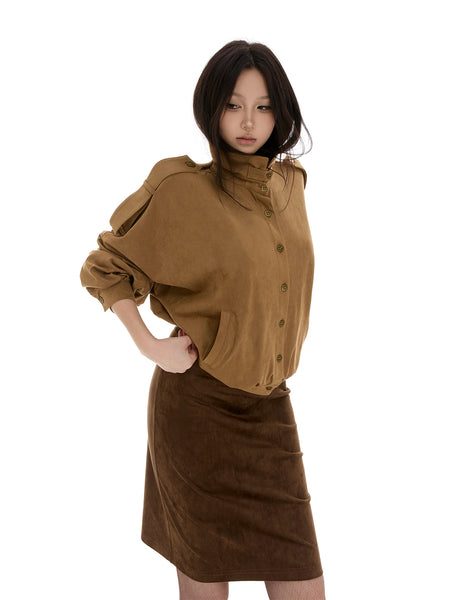 itsdinn | Low-Waisted One-Piece Suede Midi Skirt