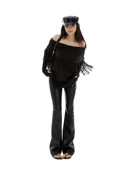 itsdinn | Low-Waisted Retro Bodycon Flared Leat...