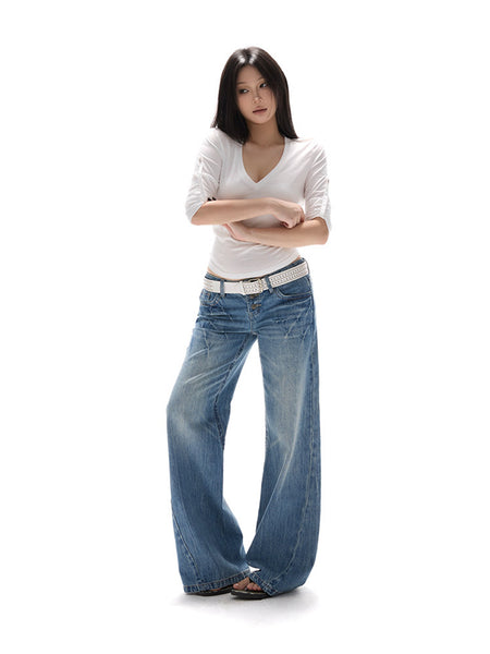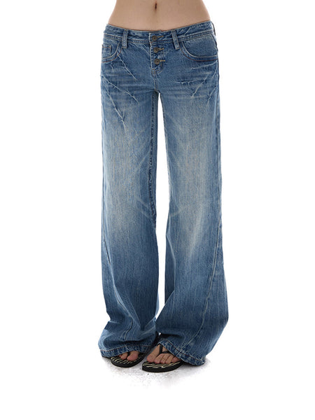 DeleteEX | Low-Rise Washed Blue Flared Jeans