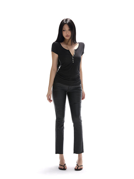 itsdinn | Mid-Rise Coated Leather Pants