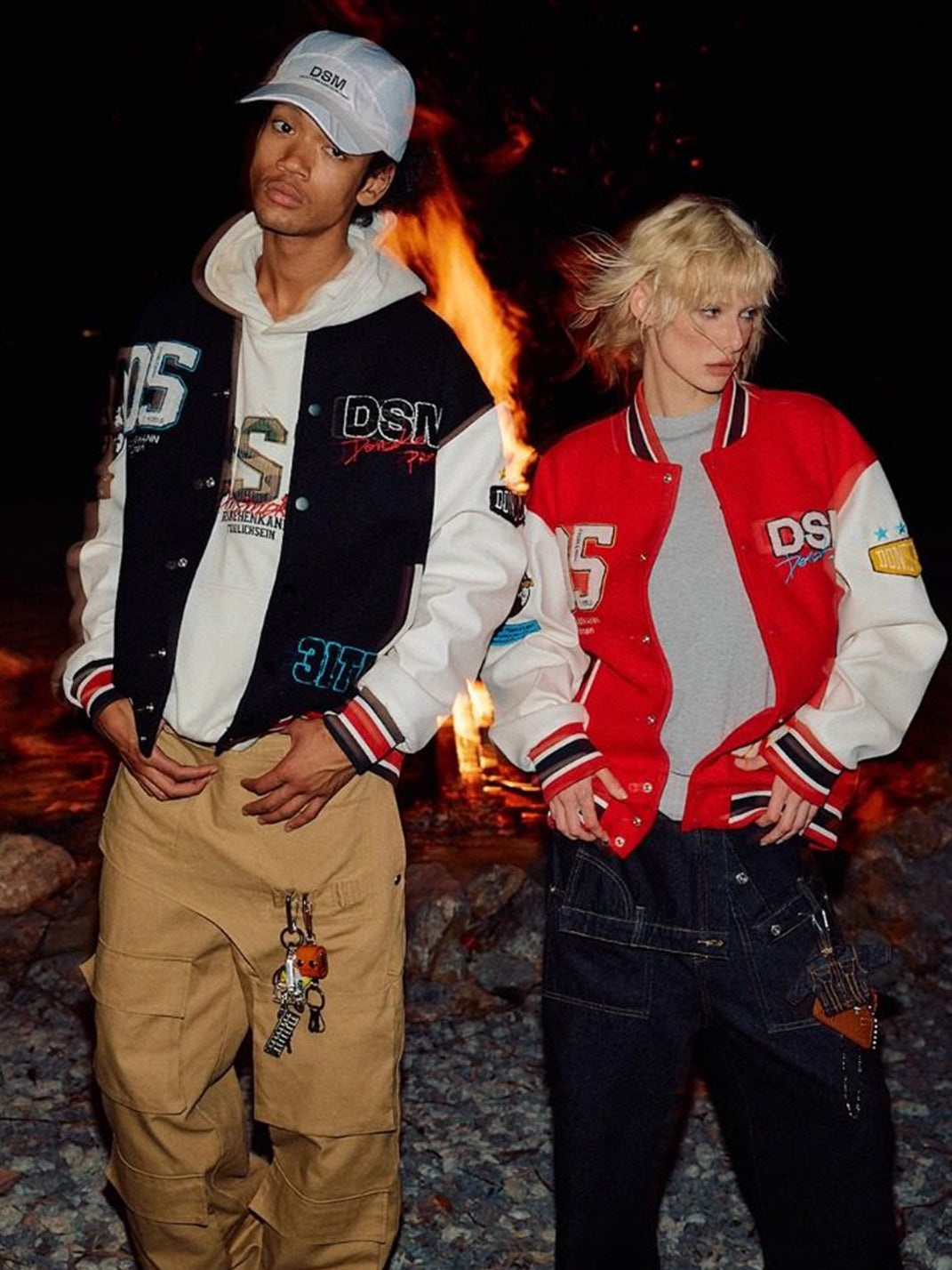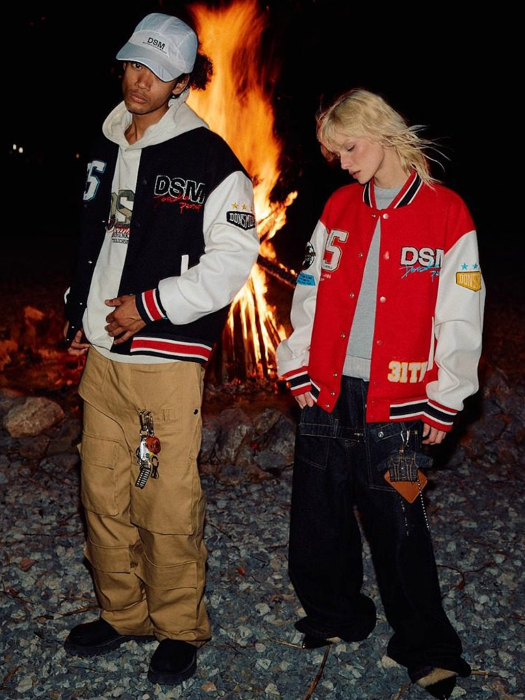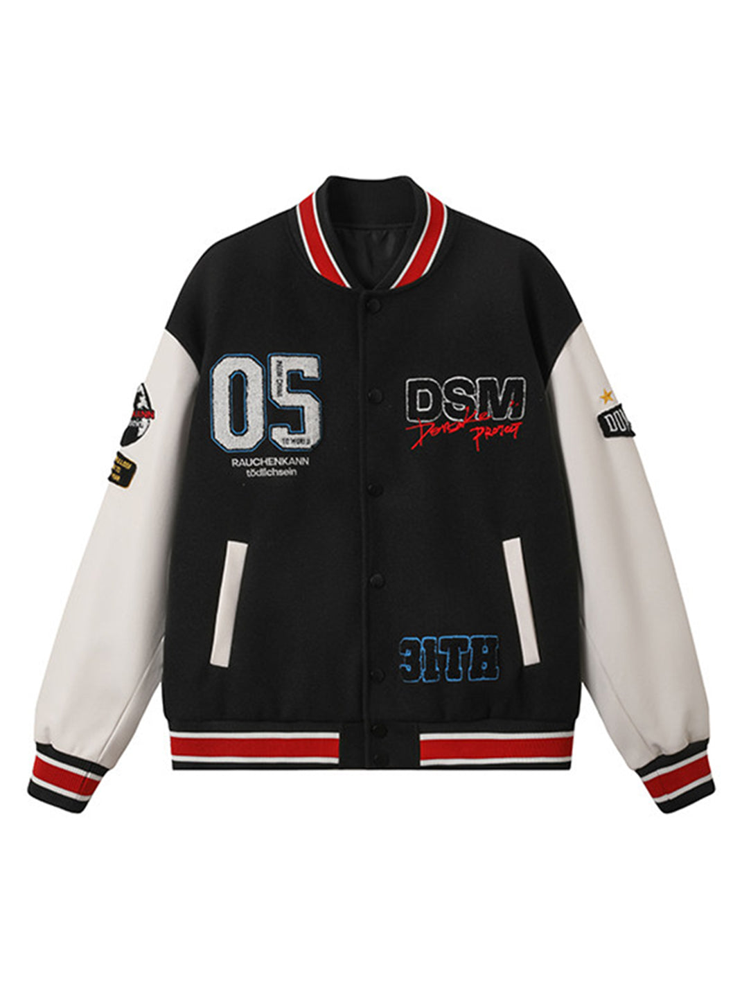DONSMOKE | Color-Blocked Leather Baseball Jacket