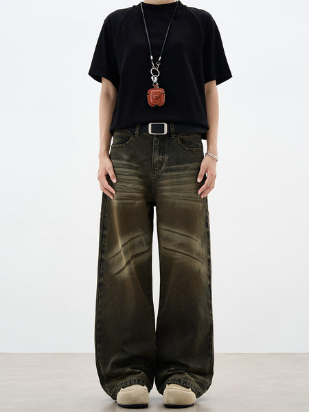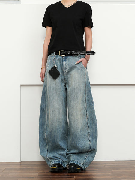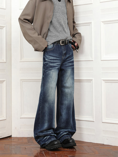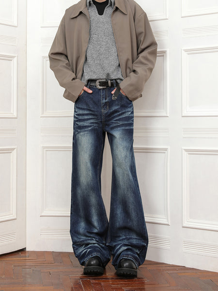 FLYOFF | Vintage Street-Style Washed Wide-Leg J...