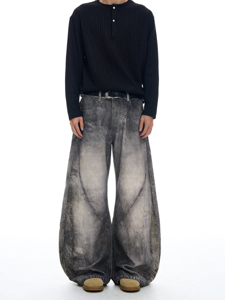 FLYOFF | Vintage Banded Wide-Leg Baggy Jeans
