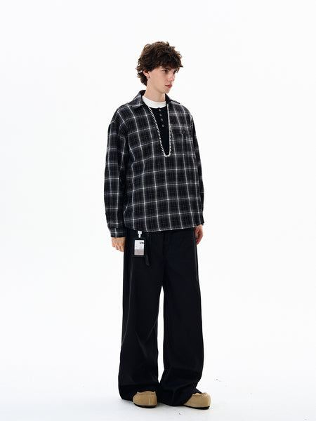 FLYOFF | Vintage Plaid Cuffed Denim Wide-Legged...