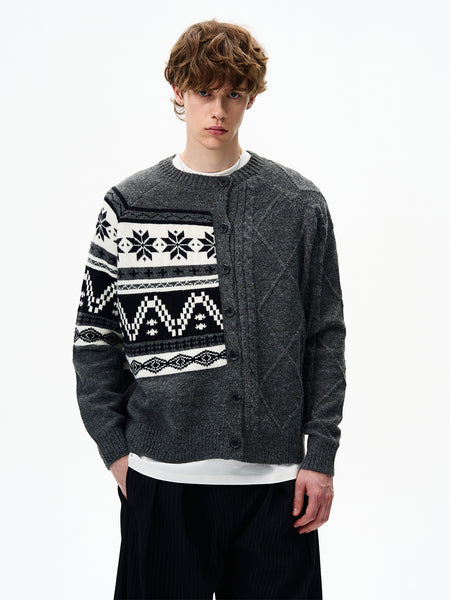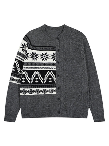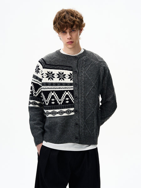 FLYOFF | Fair Isle Color-Block Buttoned Knit Ca...