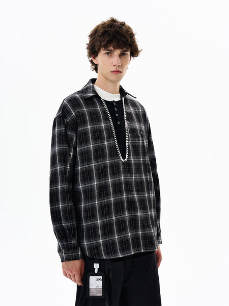 FLYOFF | Unisex Two-Tone Checkered Shirt with H...