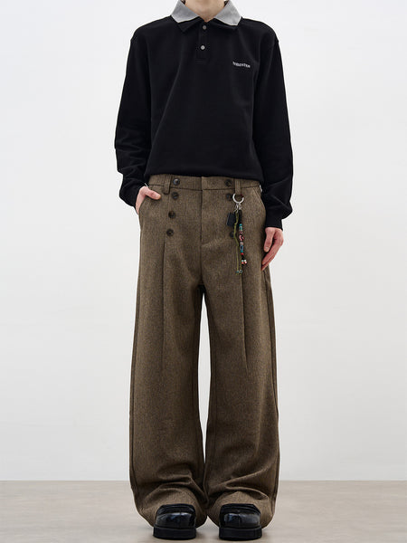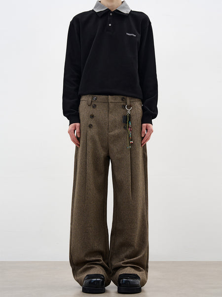 FLYOFF | Vintage Pinstripe Pleated Relaxed Trou...
