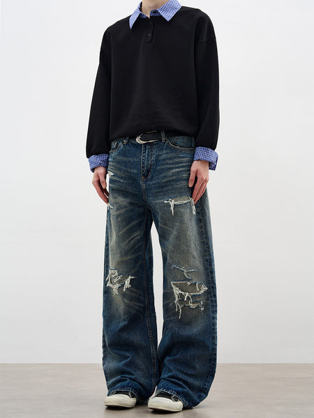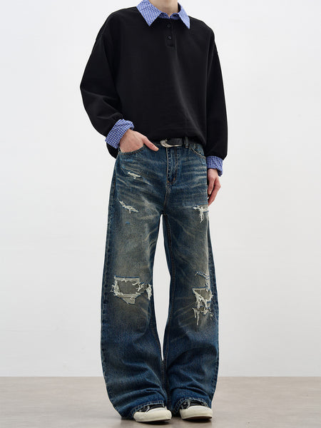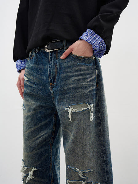 FLYOFF | Vintage Wide-Legged Distressed Jeans