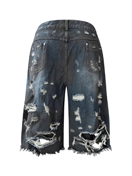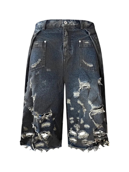 GOJOYJINNI | Ripped Pleat 3/4 Jean Shorts
