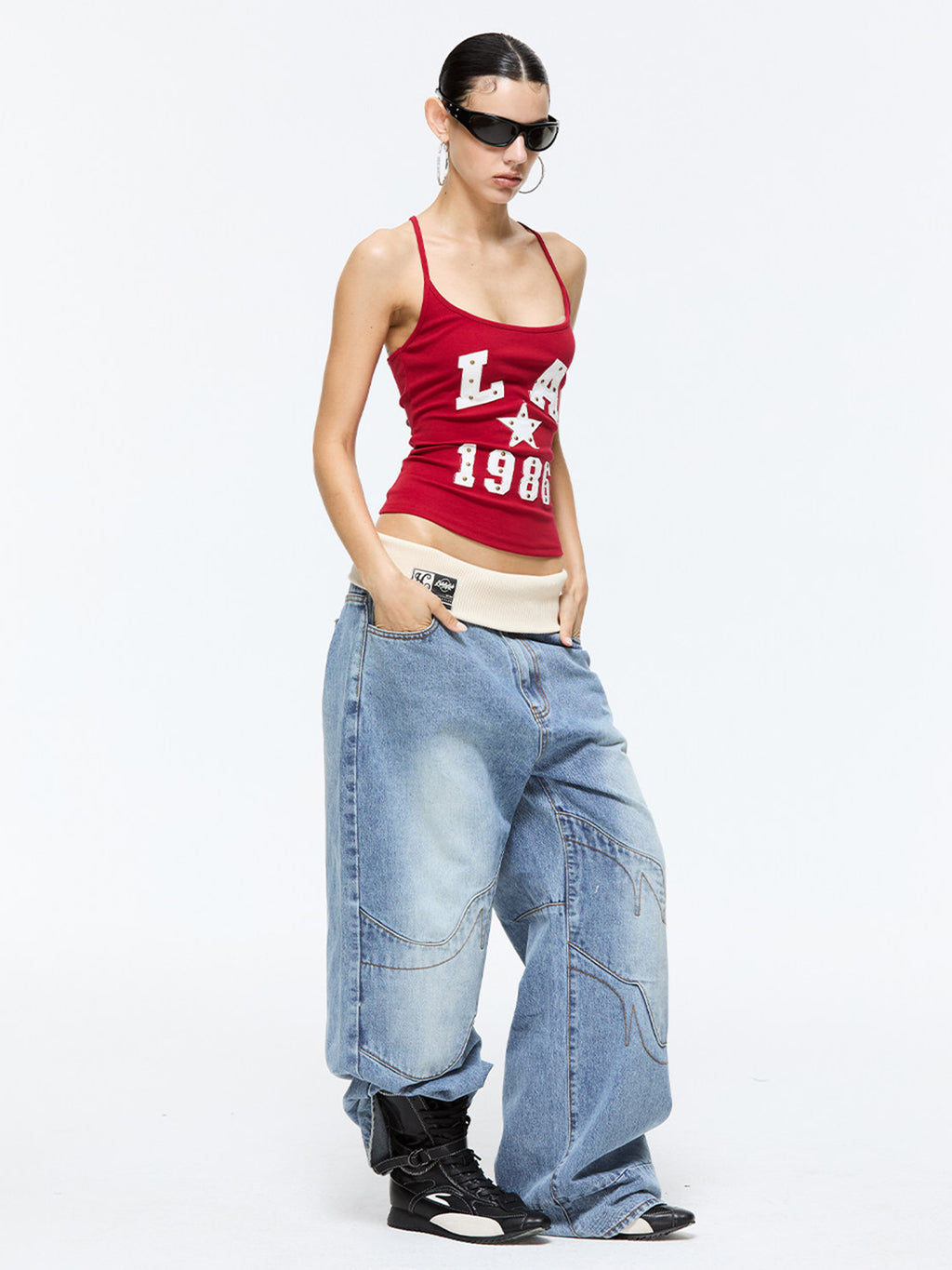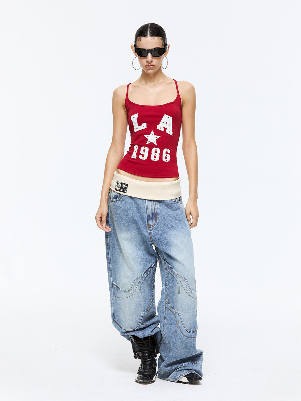 Latelylab | Appliqué Embroidered Knitted Camisole-Red コンテンツにスキップ