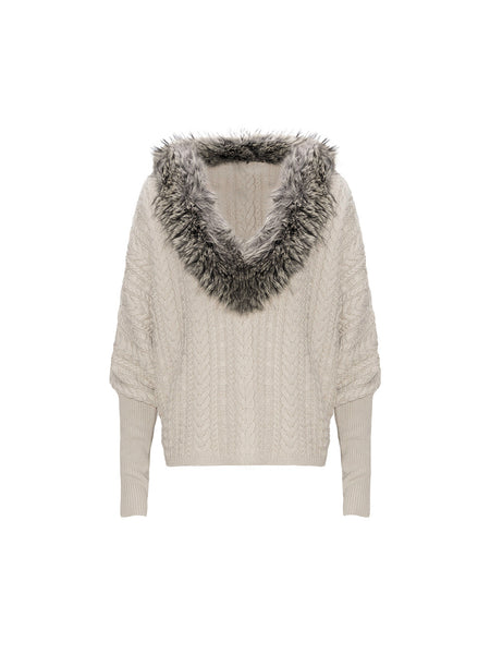JYOSEI | Cable Knit Wool Blend V-Neck Sweater
