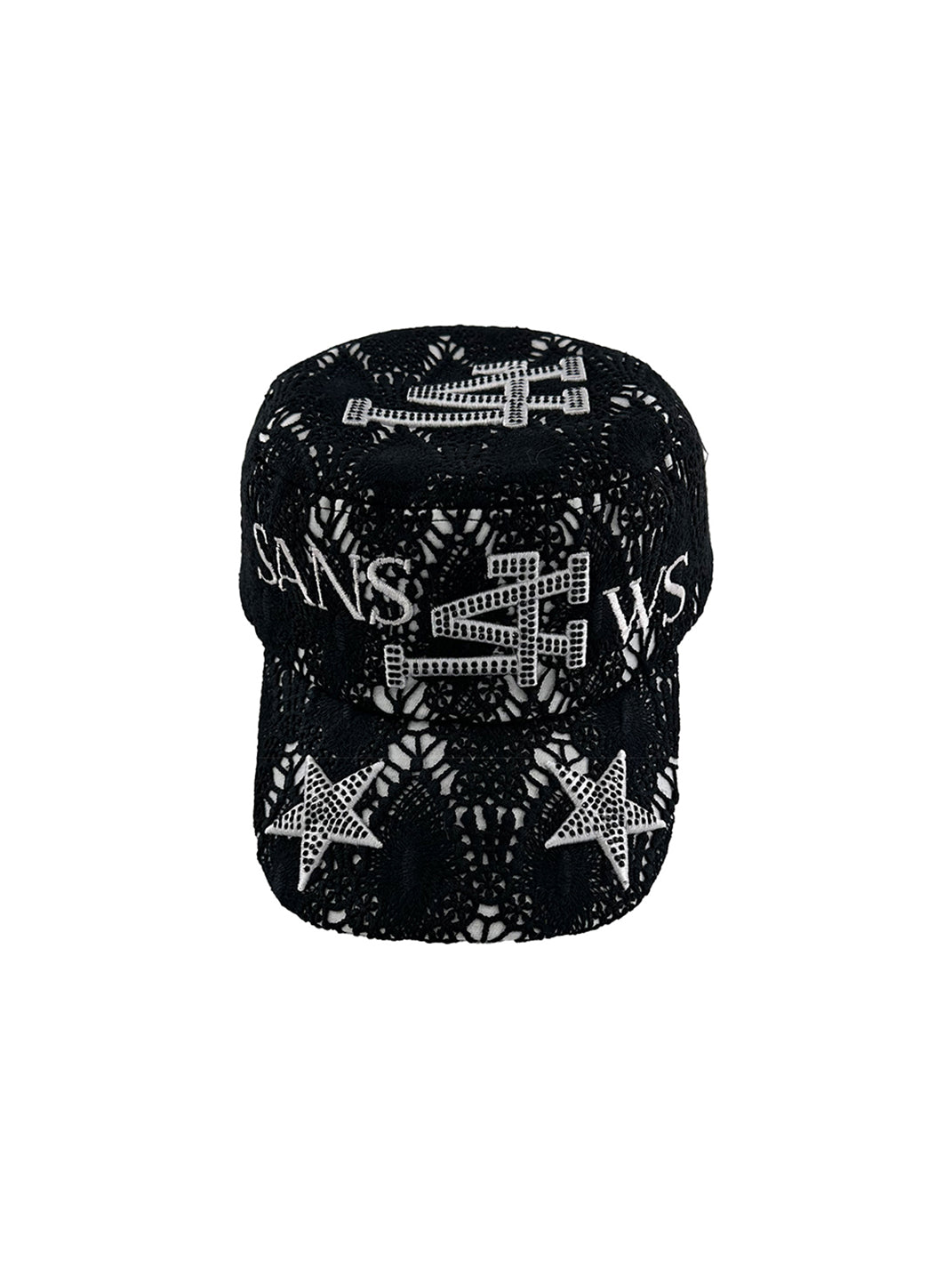 SANSLAWS丨Embroidered Rhinestone Flat Top Cap - Black コンテンツにスキップ