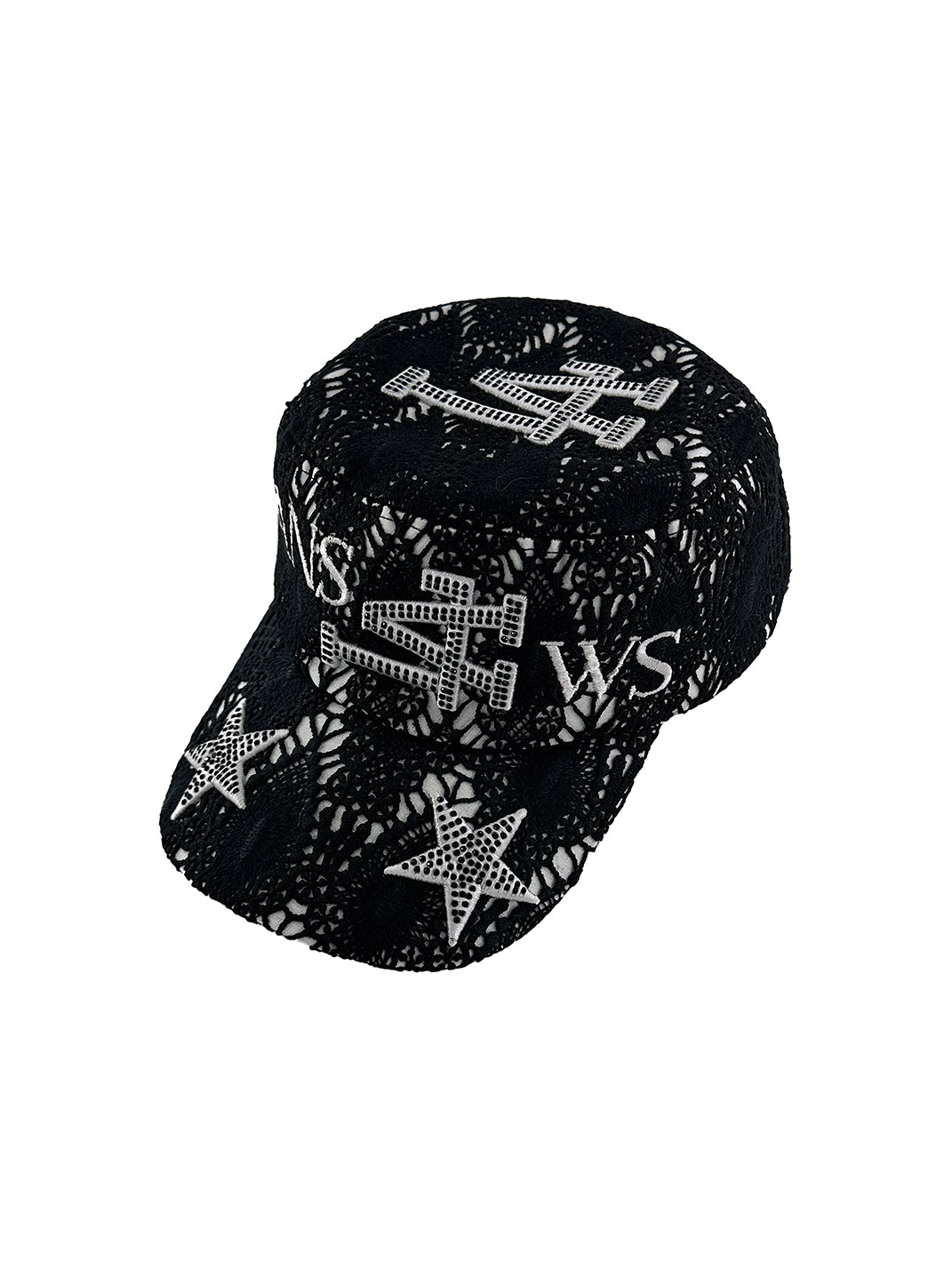 SANSLAWS丨Embroidered Rhinestone Flat Top Cap - Black