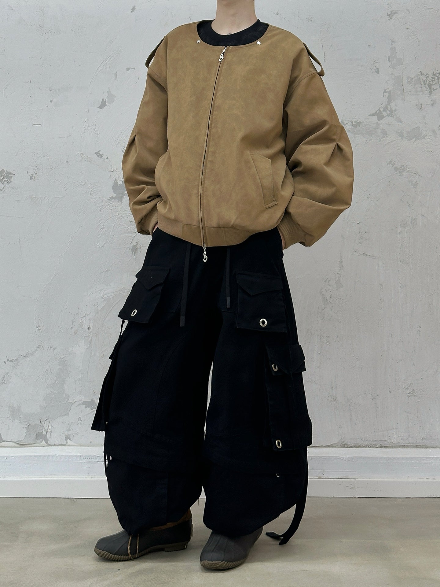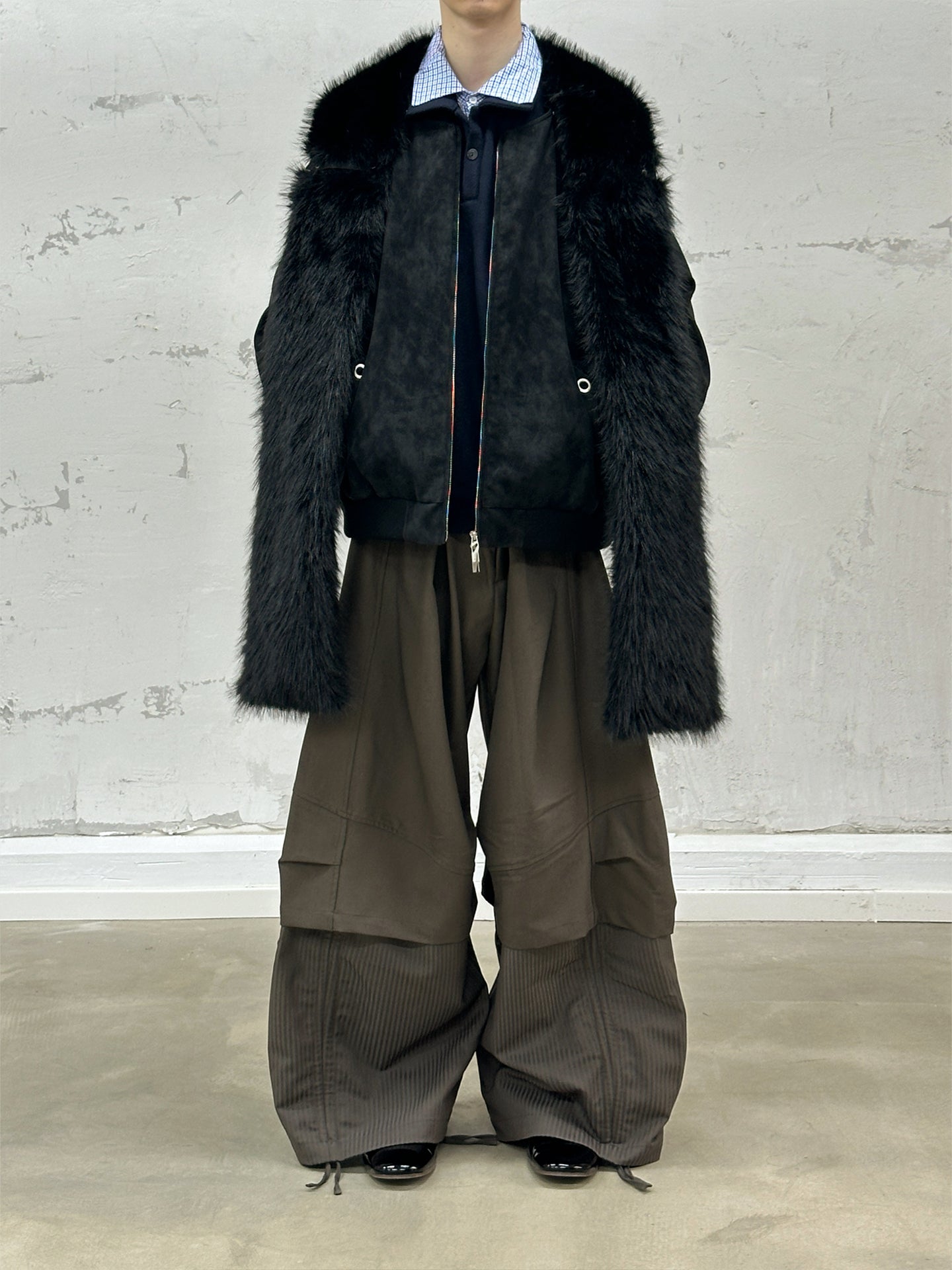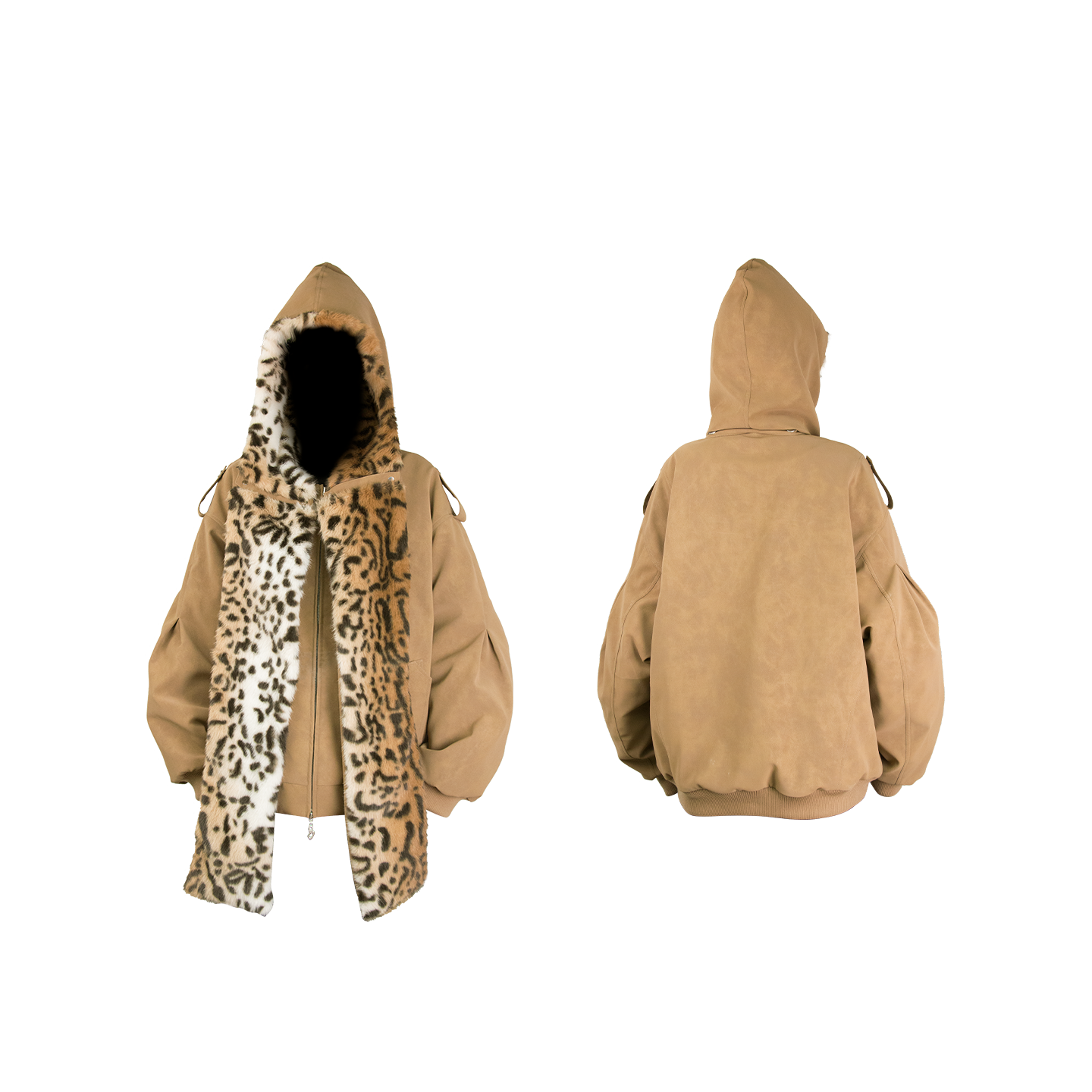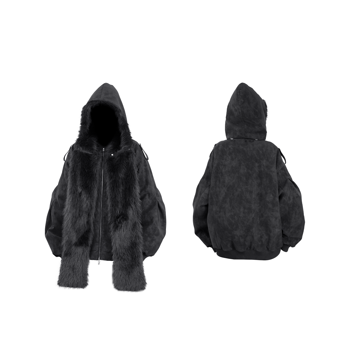 RELABEL | Detachable Plush Scarf Hooded Suede Jacket コンテンツにスキップ