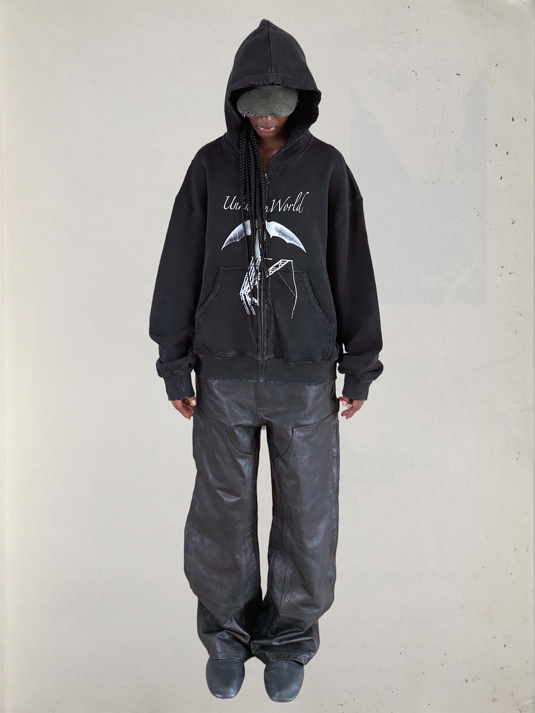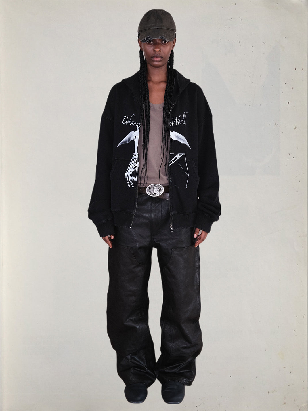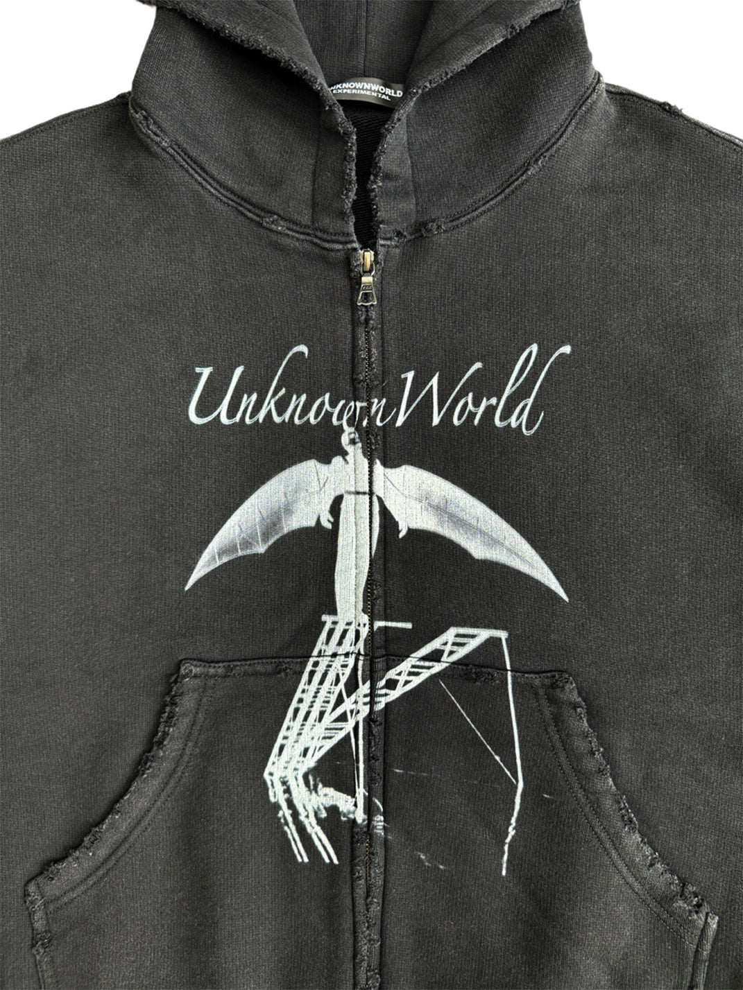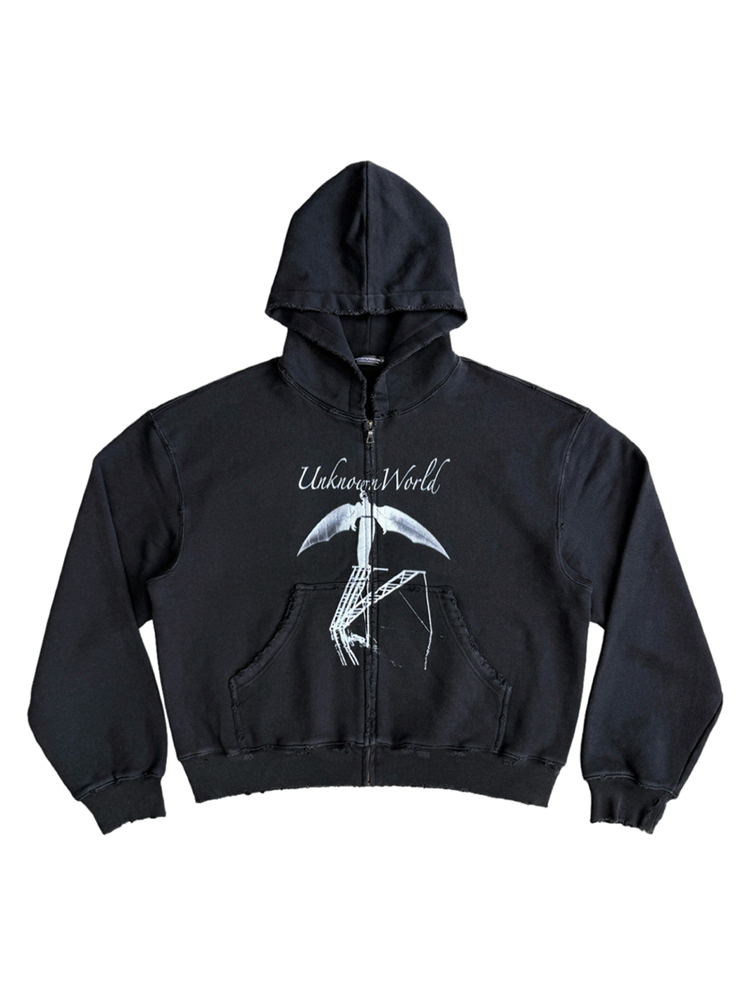 UNKNOWNWORLD | Bat Print Zip-Up Hoodie Sweatshirt