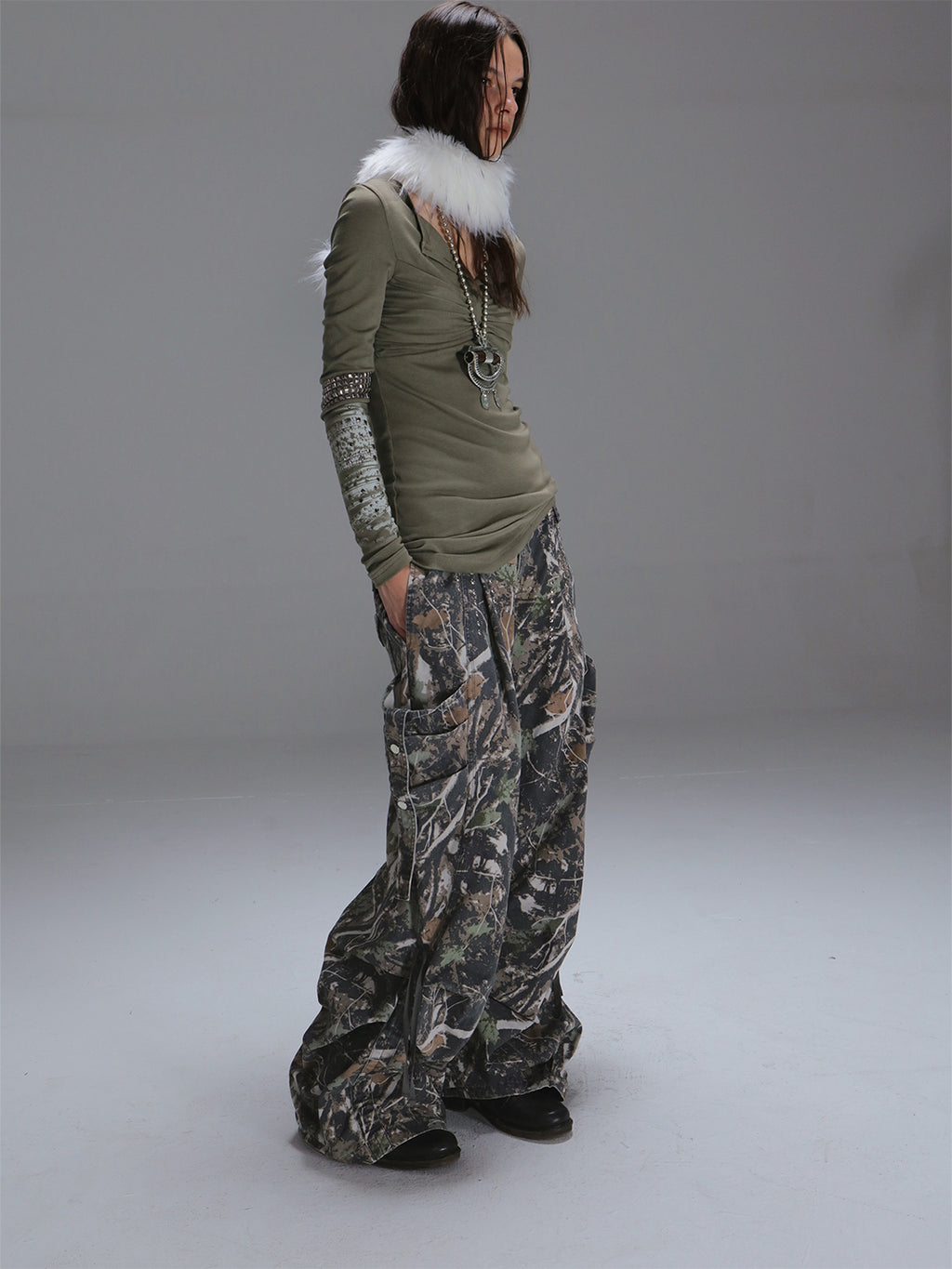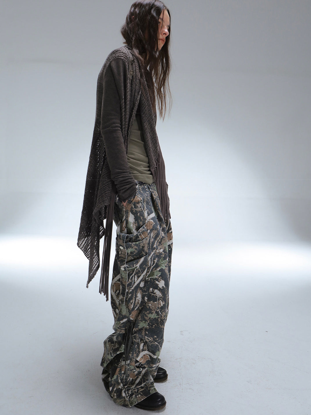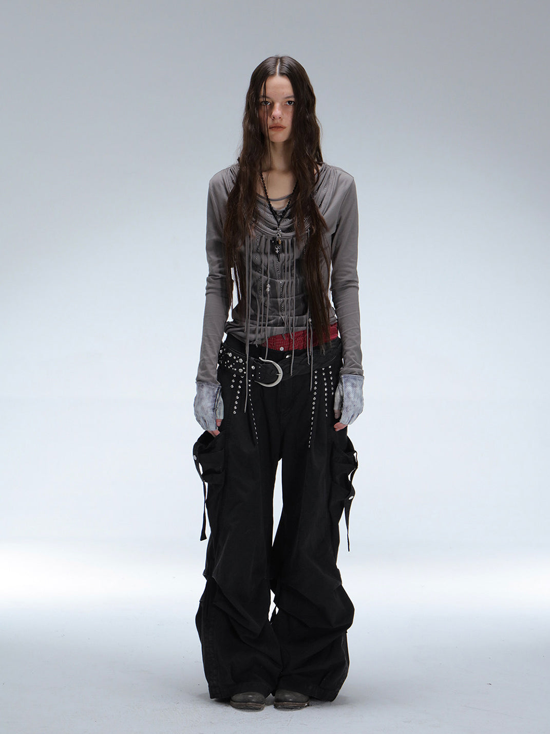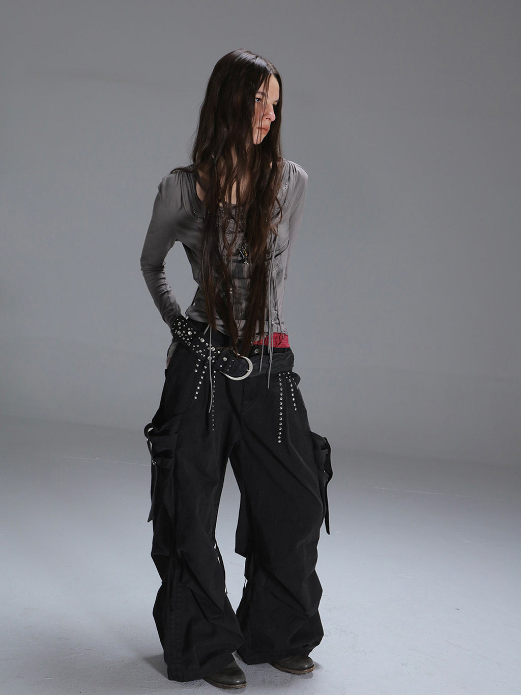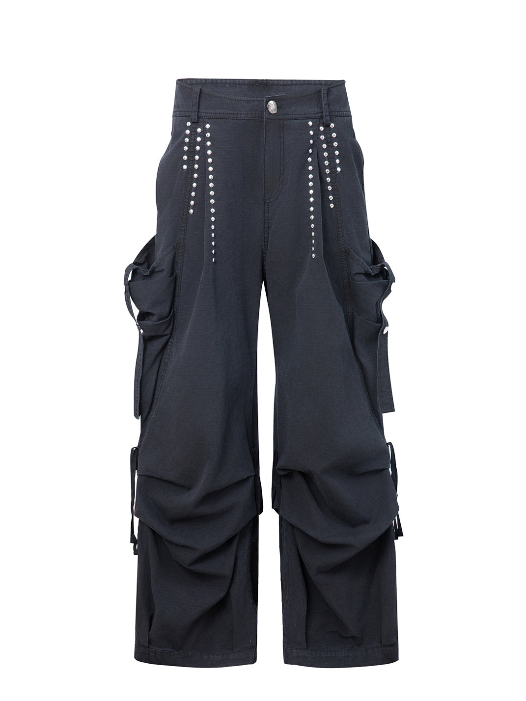 DOUBLEPUNCH | Low-Rise Straight-Leg Wide-Leg Cargo Pants With Pockets コンテンツにスキップ