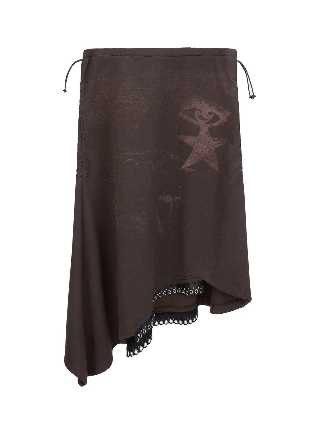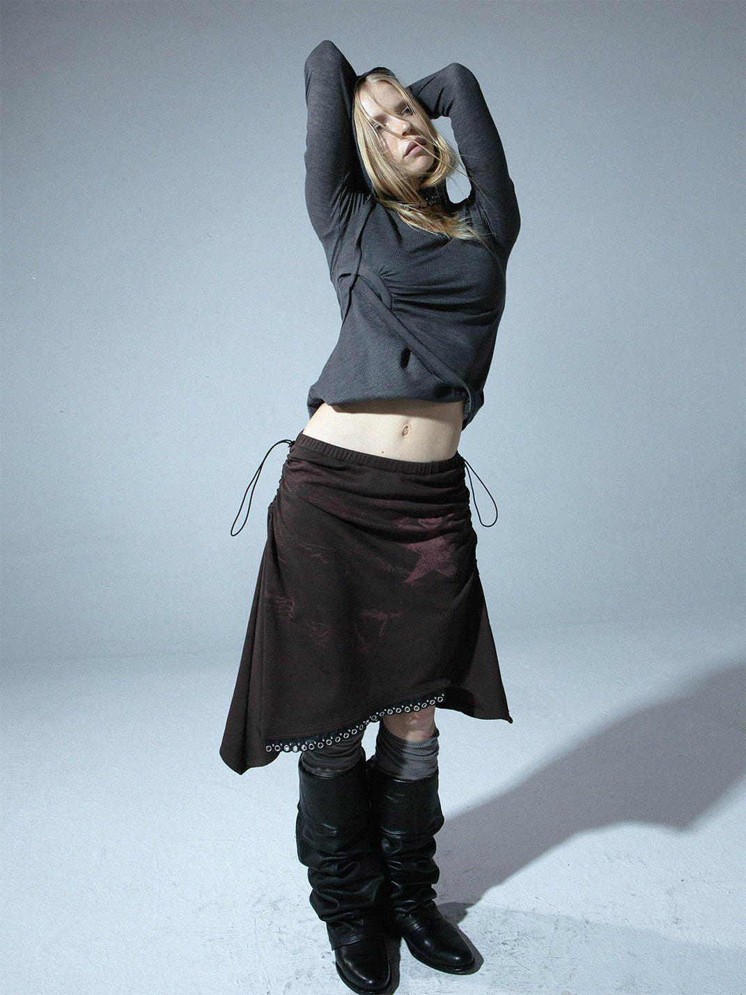 DOUBLEPUNCH | Printed Irregular Low-Waisted Midi Skirt