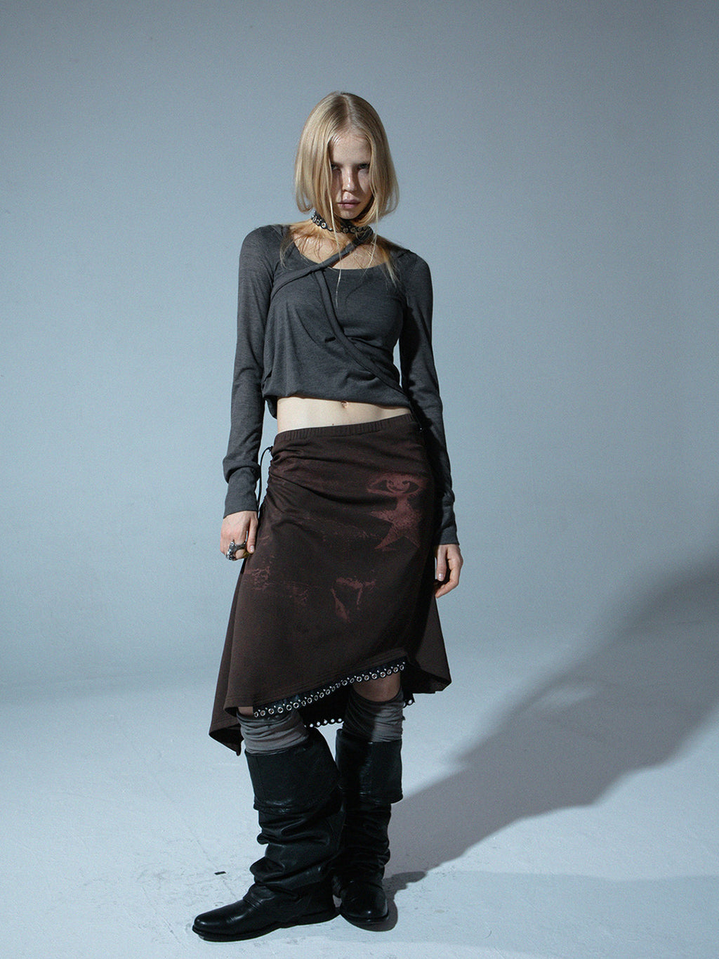 DOUBLEPUNCH | Printed Irregular Low-Waisted Midi Skirt コンテンツにスキップ