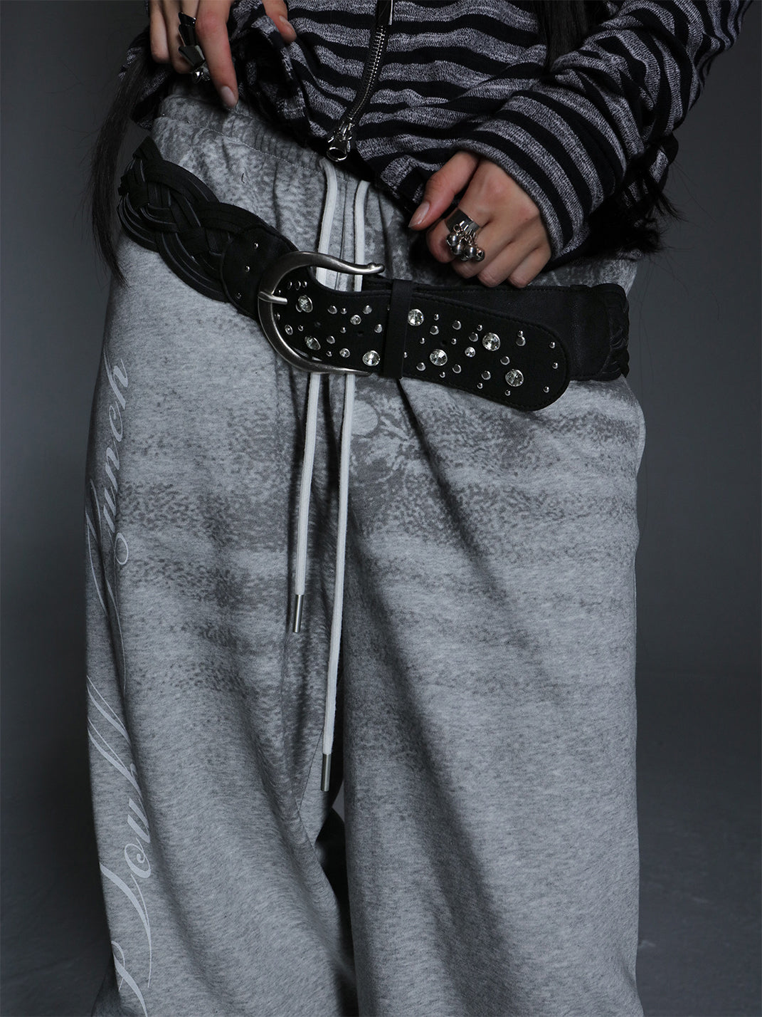 DOUBLEPUNCH | Woven Rivet Buckle Wide Belt