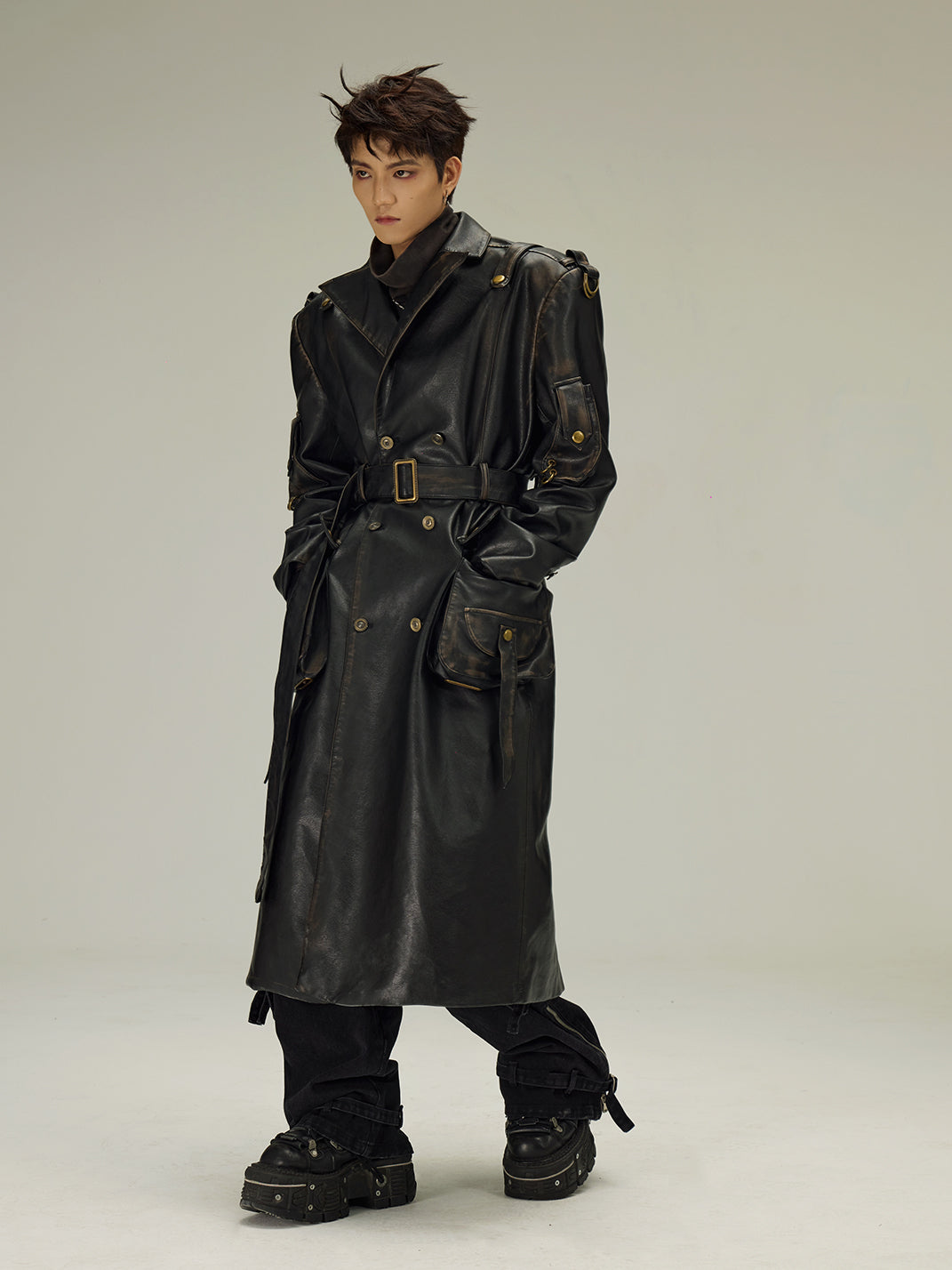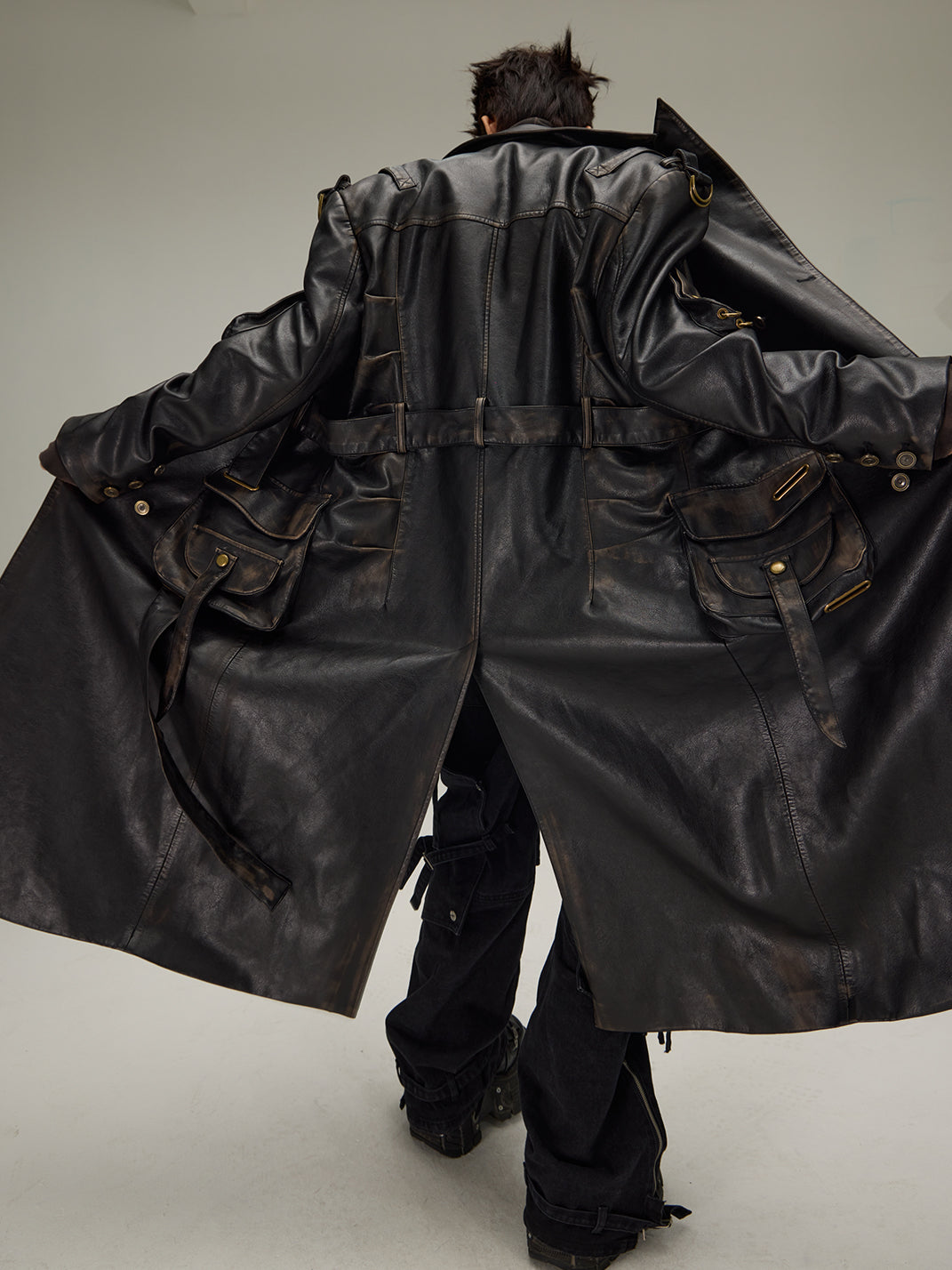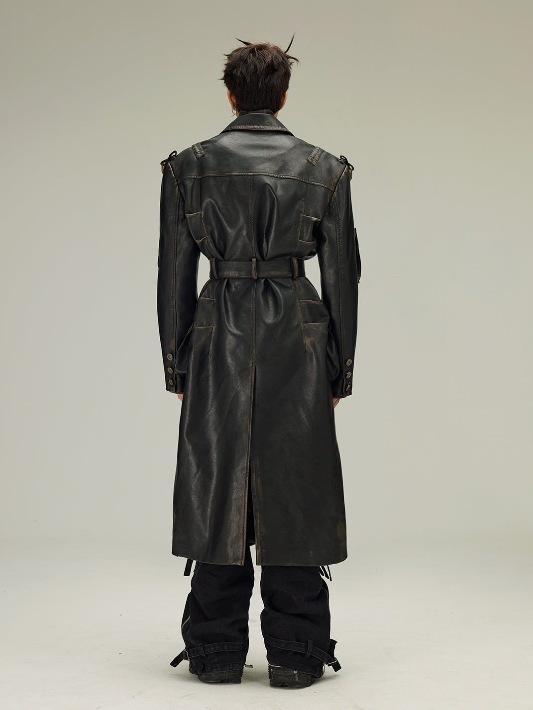 Flyerrer | Dyed Vintage Washed Leather Trench Coat