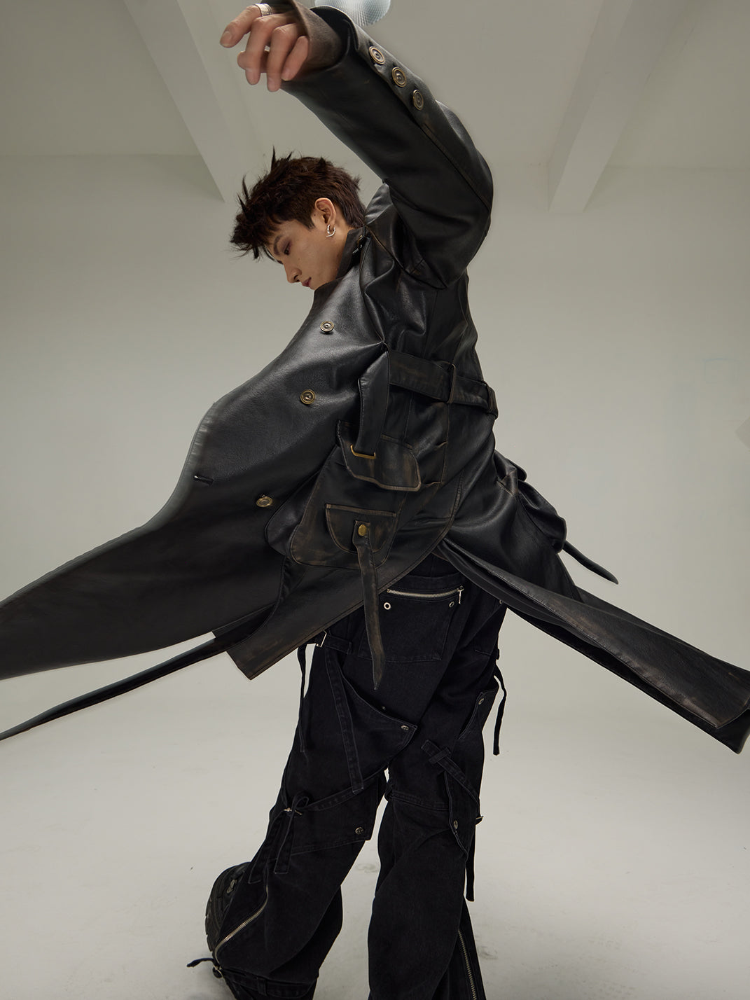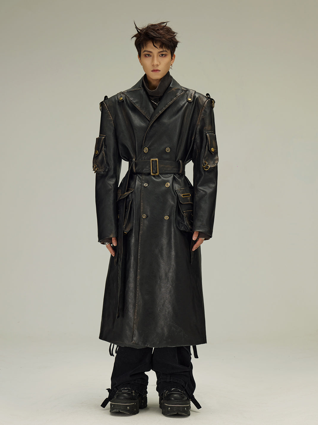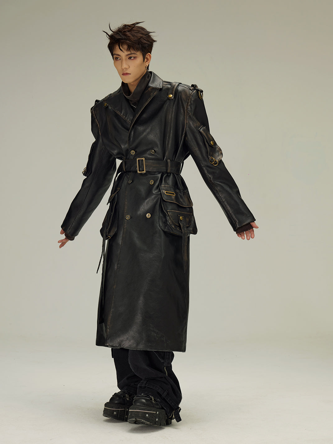 Flyerrer | Dyed Vintage Washed Leather Trench Coat