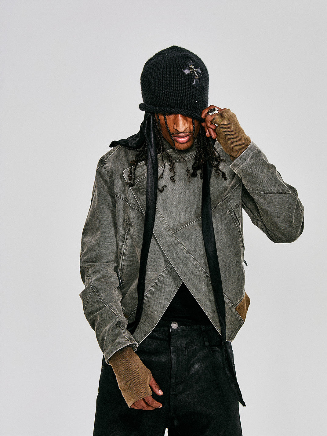Flyerrer | Irregular Lapel Patchwork Design Jacket