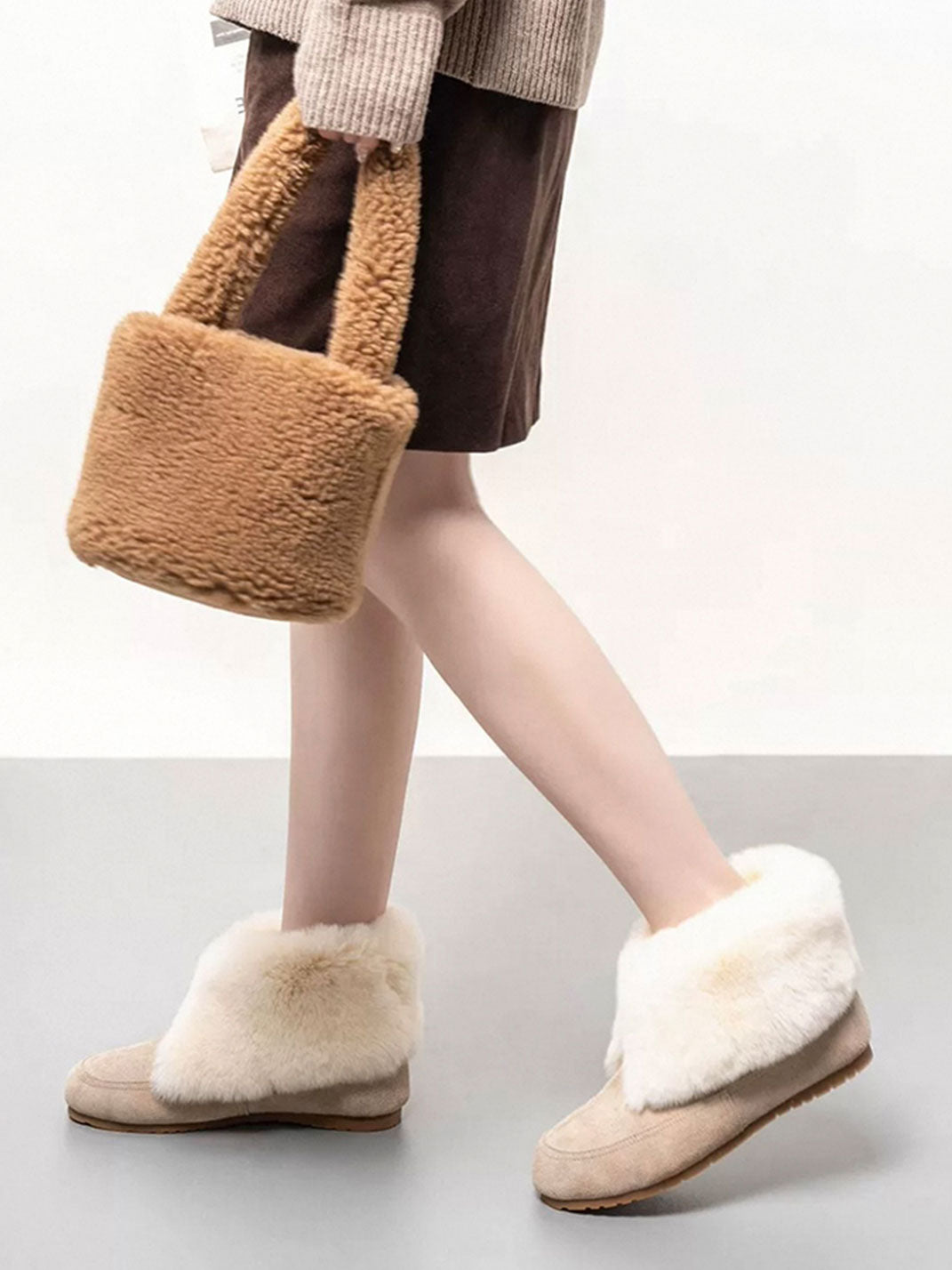 GIRLSHOME丨Faux Fur Lined Short Snow Boots
