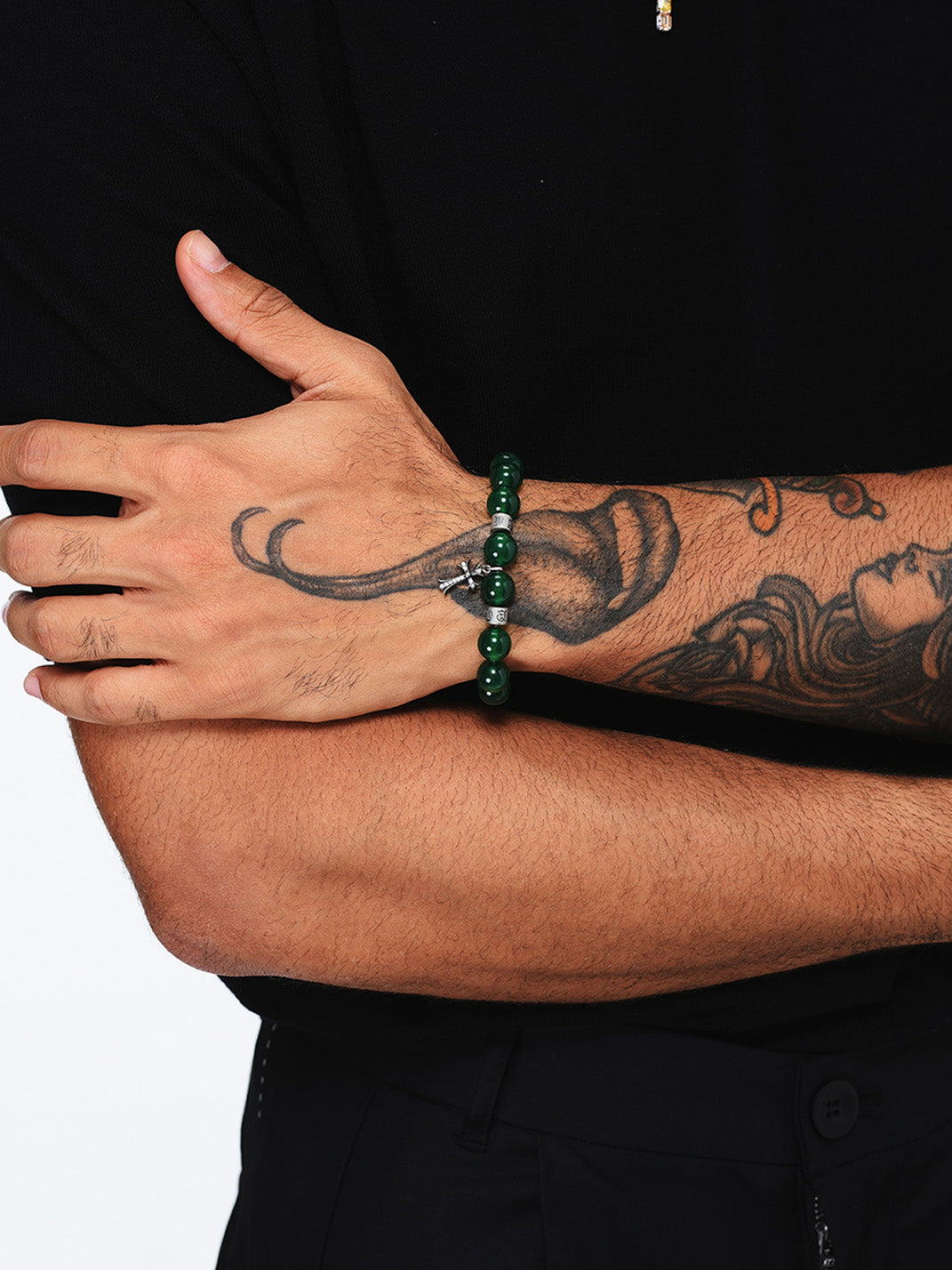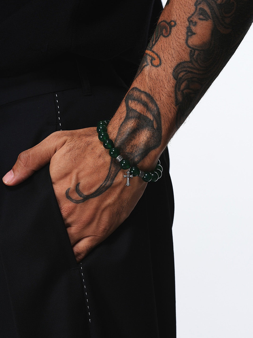 ICEGANG | Natural Blue Agate Cross Bracelet