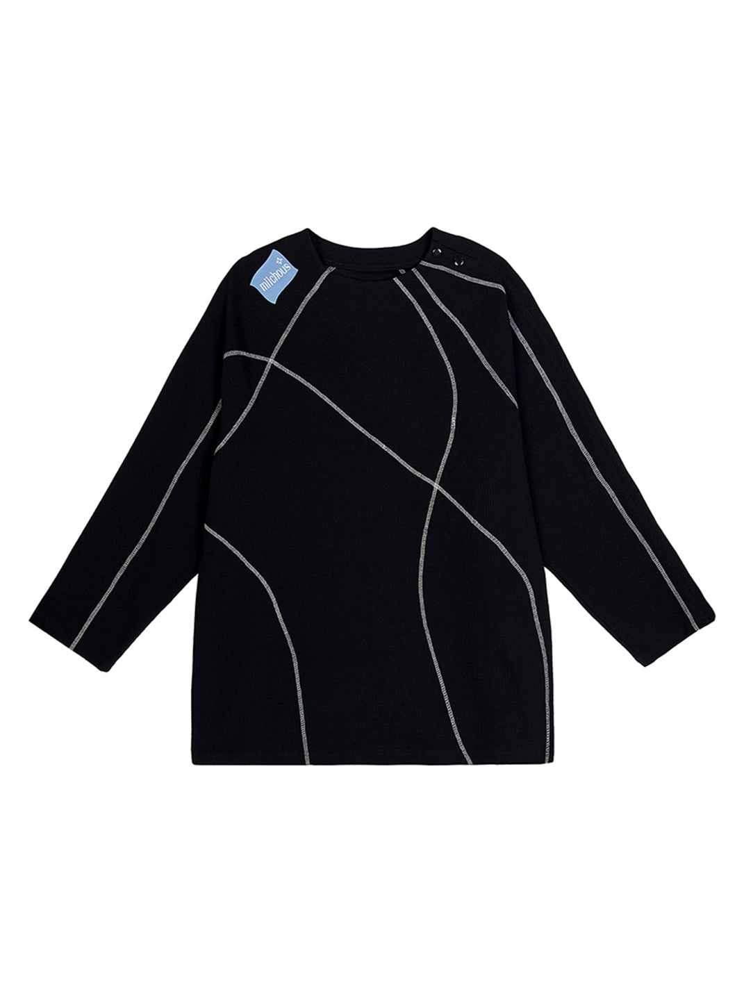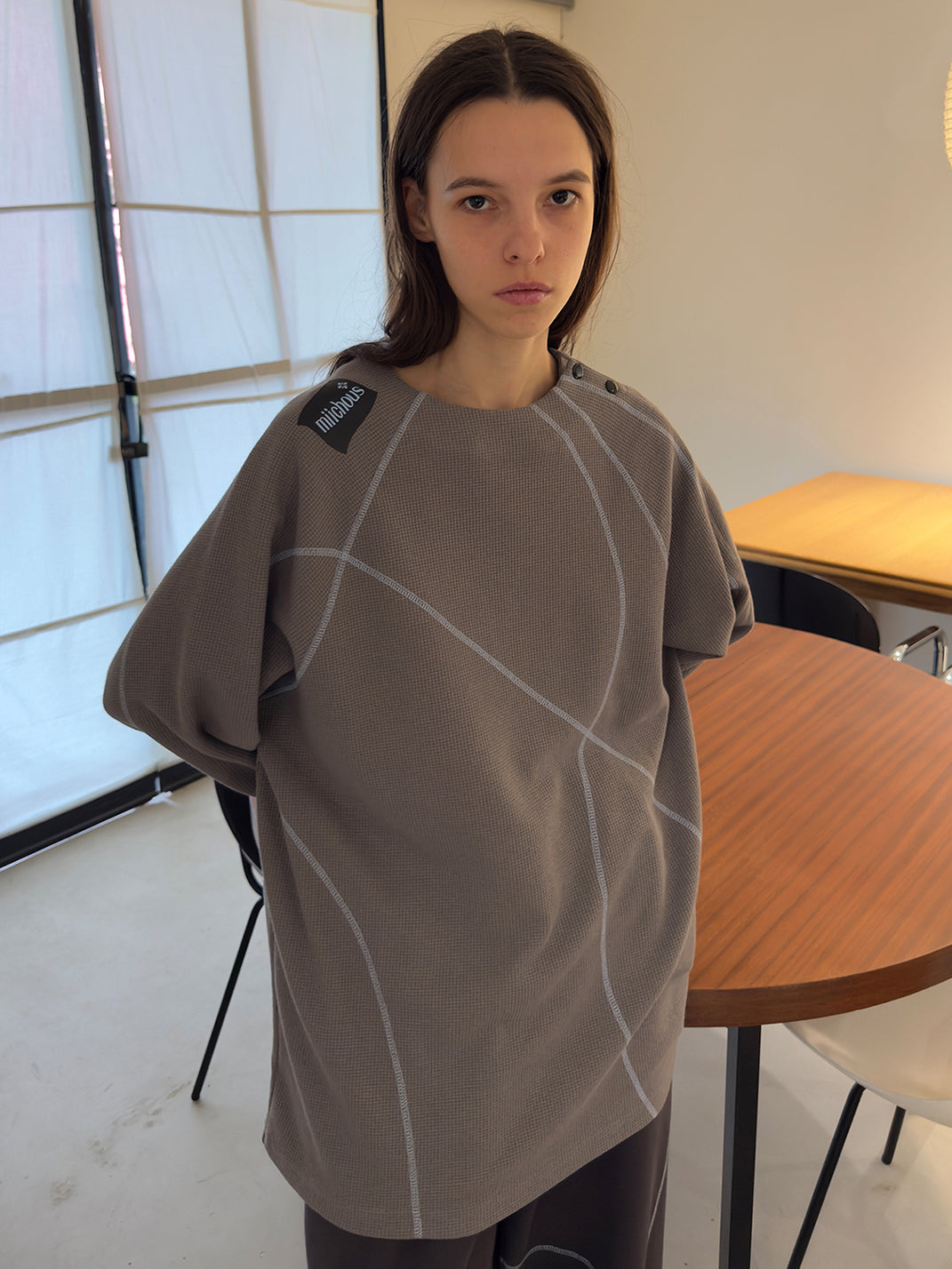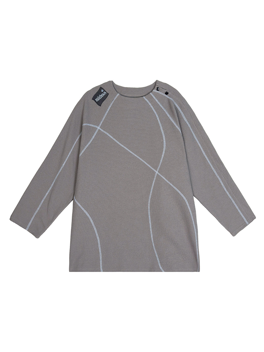 MIICHOUS | Contrast Stitch Waffle Knit Long Sleeve Sweatshirt
