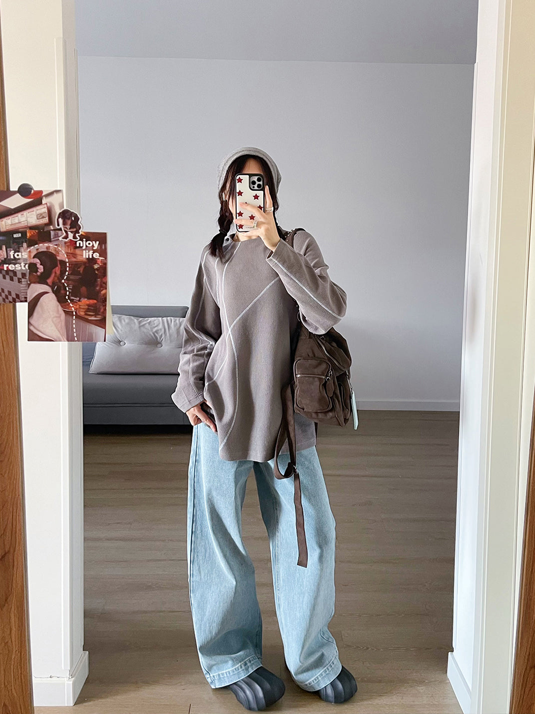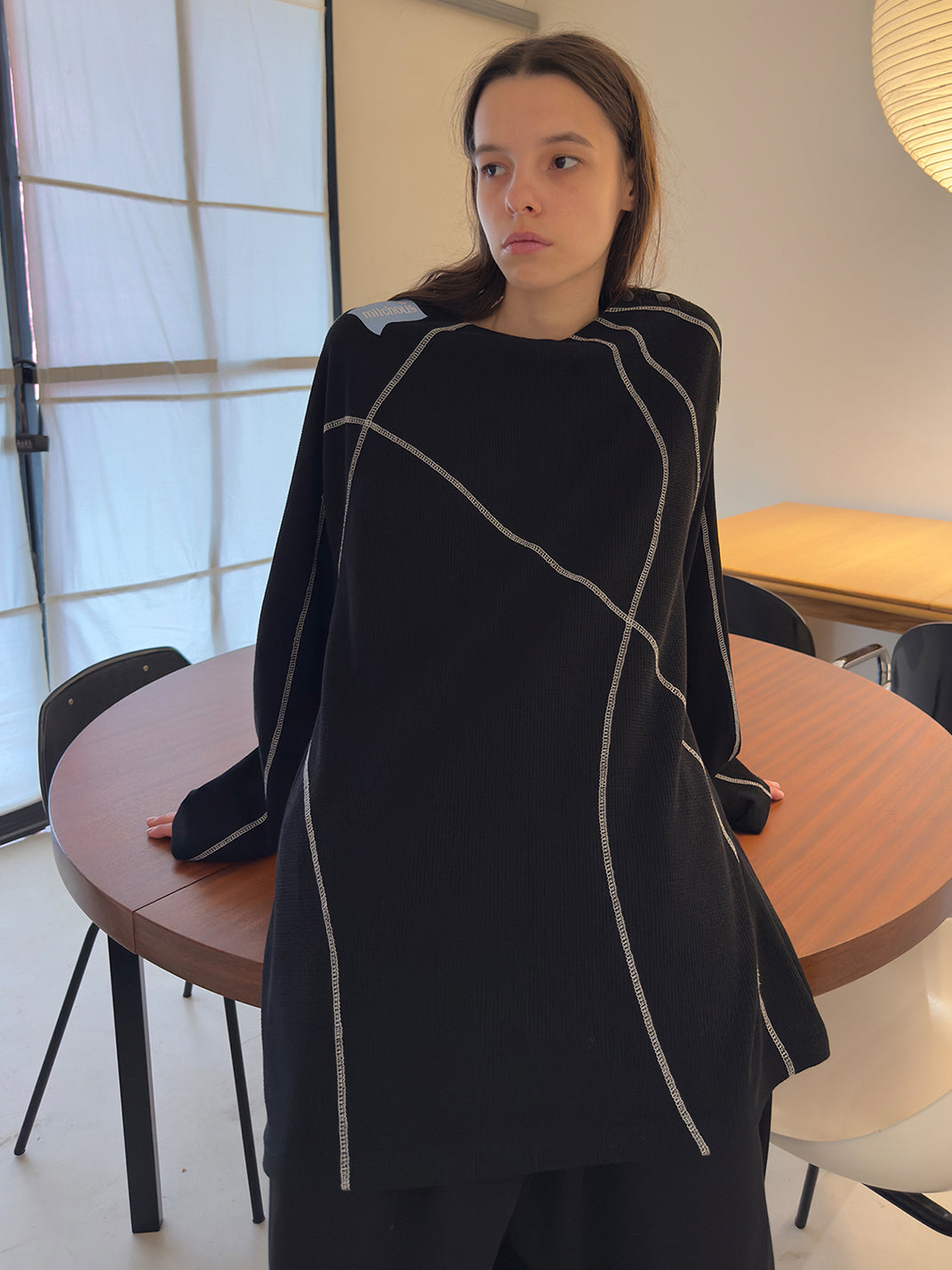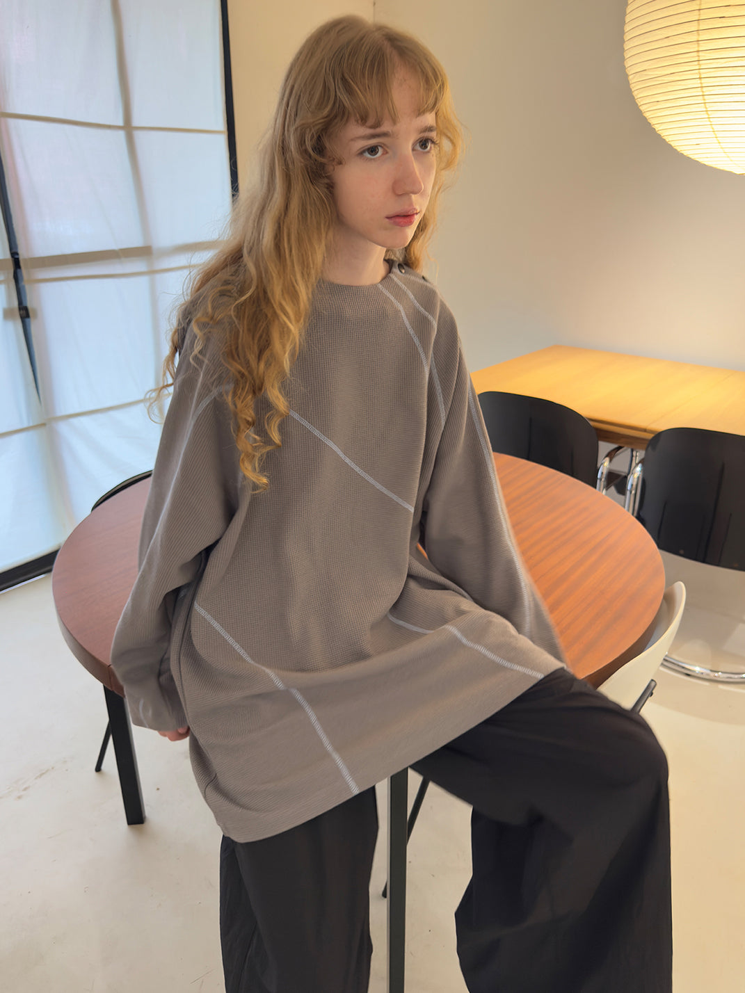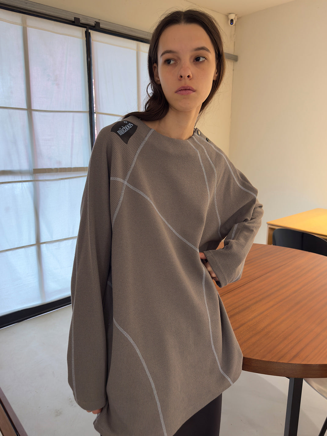 MIICHOUS | Contrast Stitch Waffle Knit Long Sleeve Sweatshirt