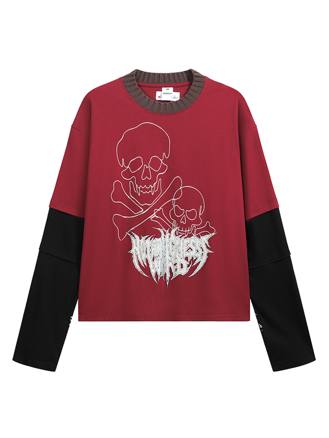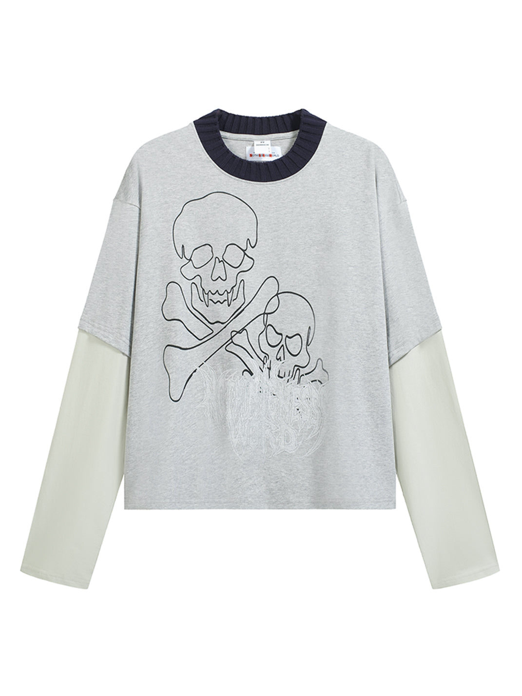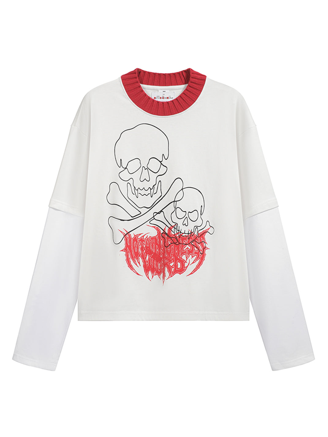NOTHINGNESS WORLD | Printed Color-Block Loose Long-Sleeve T-shirt コンテンツにスキップ