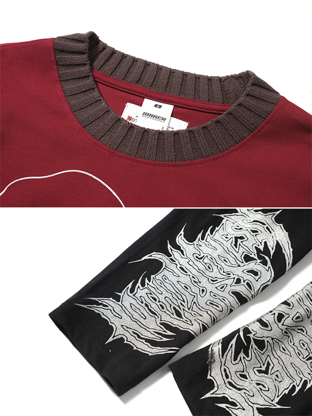 NOTHINGNESS WORLD | Printed Color-Block Loose Long-Sleeve T-shirt