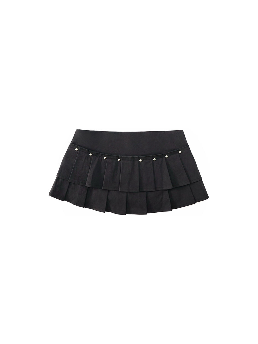 ONNASENSHI | Rivet-Decorated Zipper Pleated Skirt コンテンツにスキップ