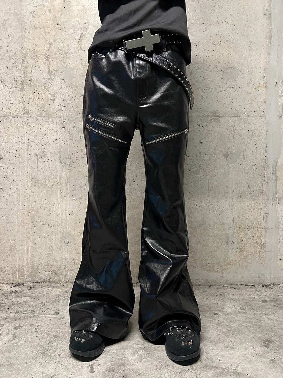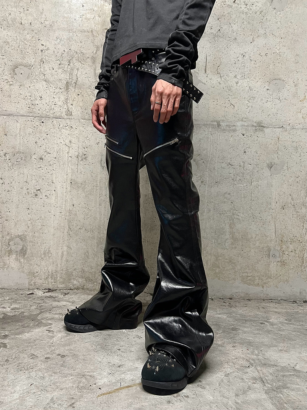 REBEL WAVE | Liquid Metal Coated Wax Pants Flared Jeans