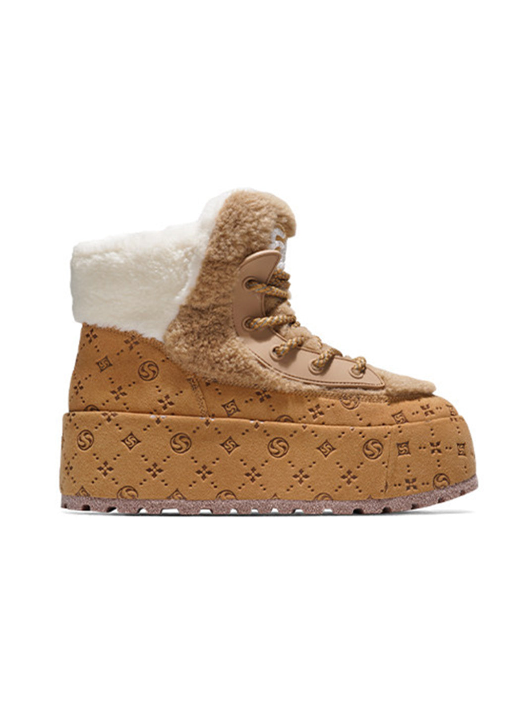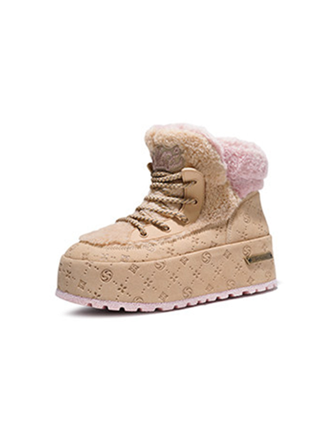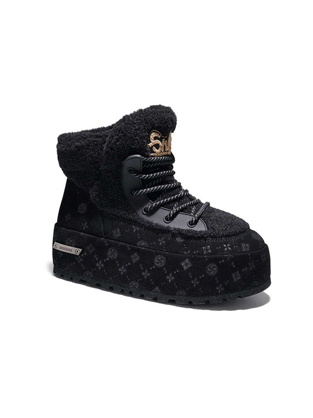 SALAXI | Monogram Design Faux Fur Platform Boots For Women