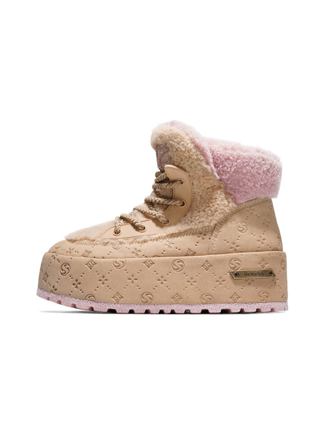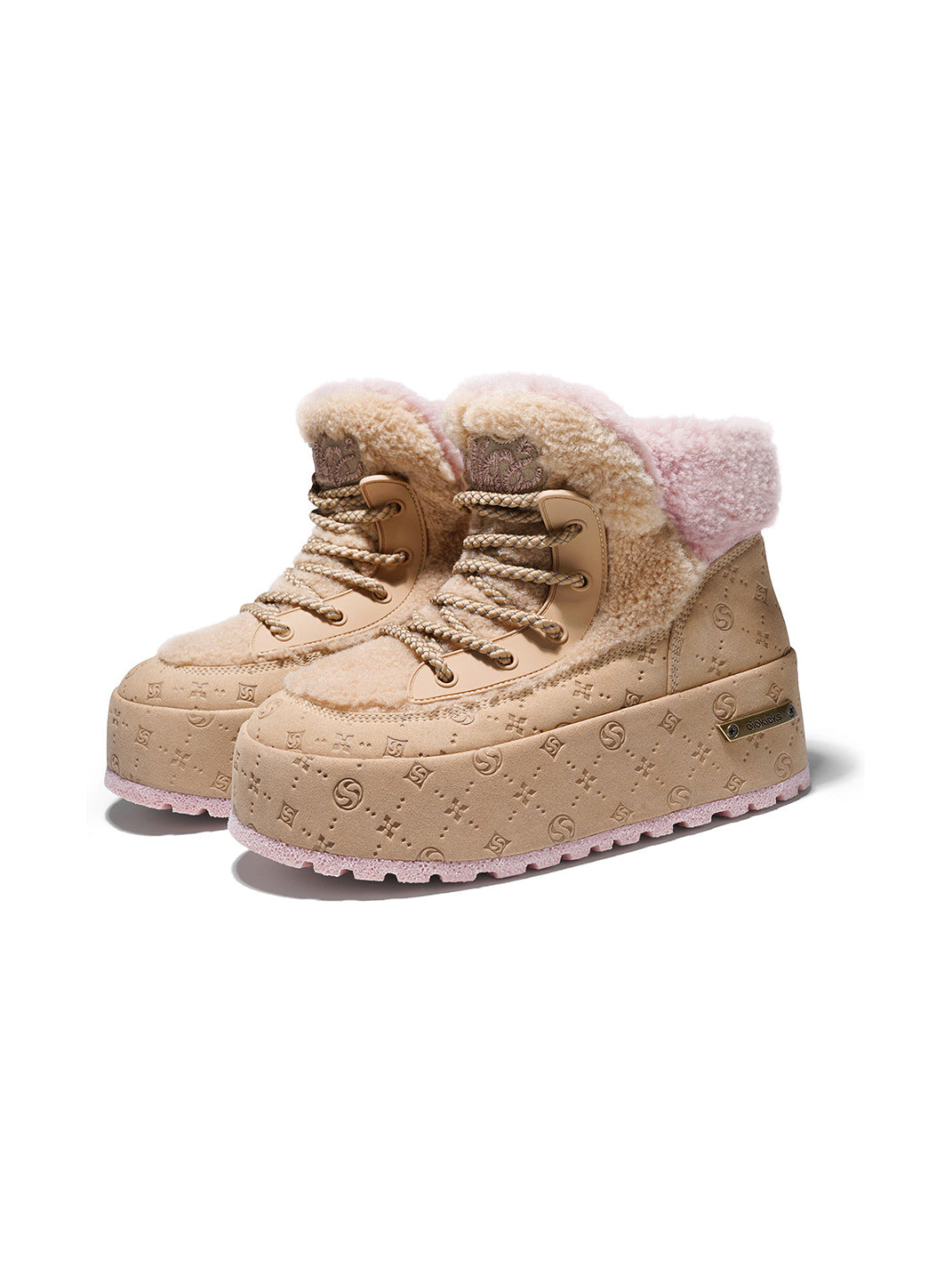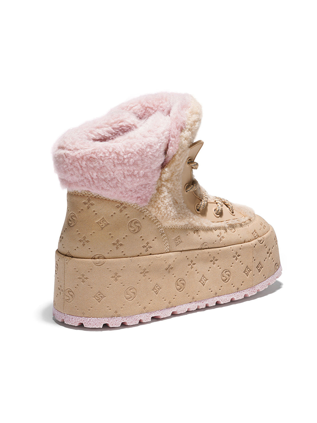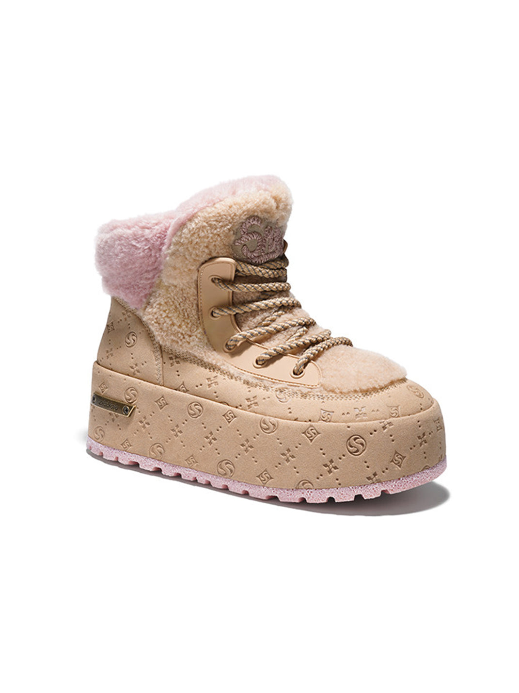 SALAXI | Monogram Design Faux Fur Platform Boots For Women